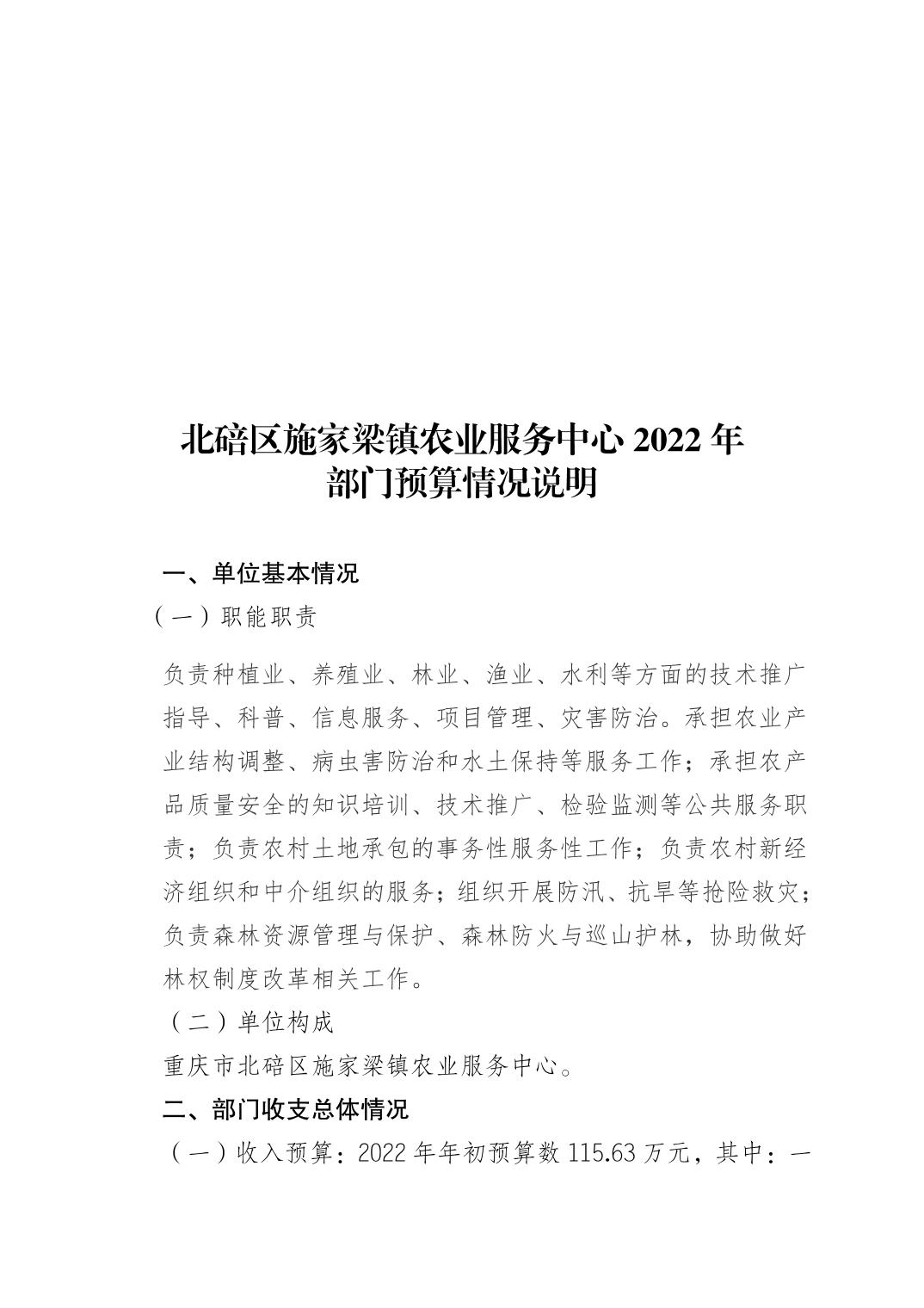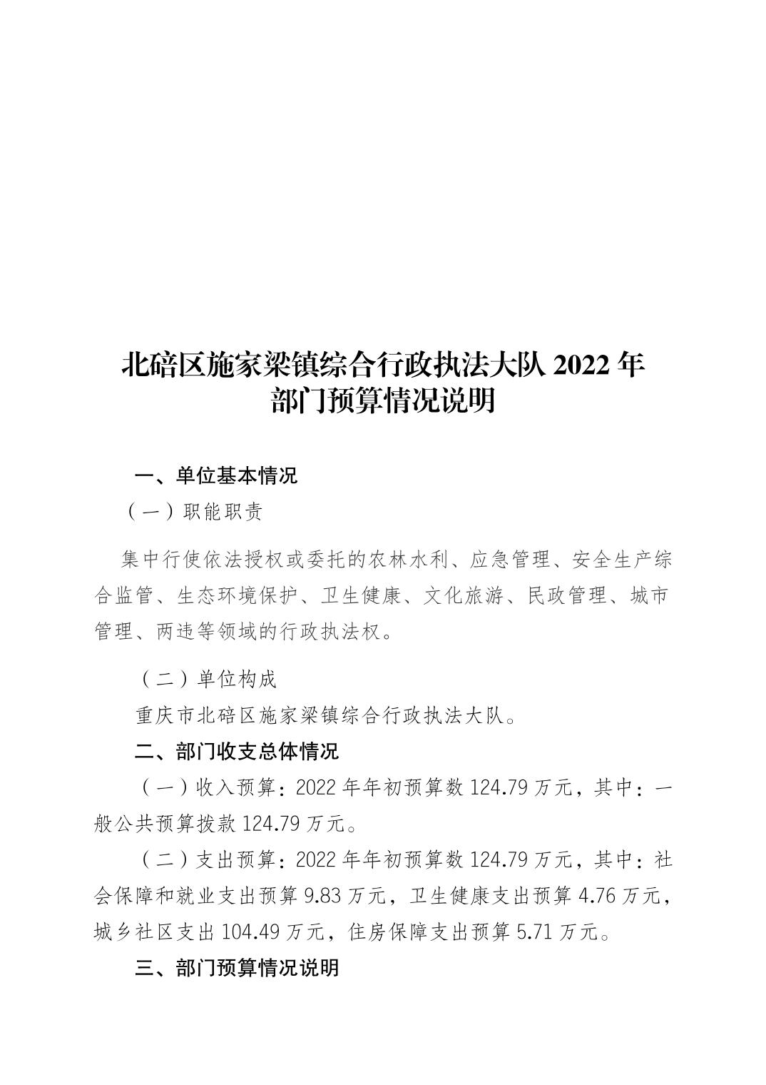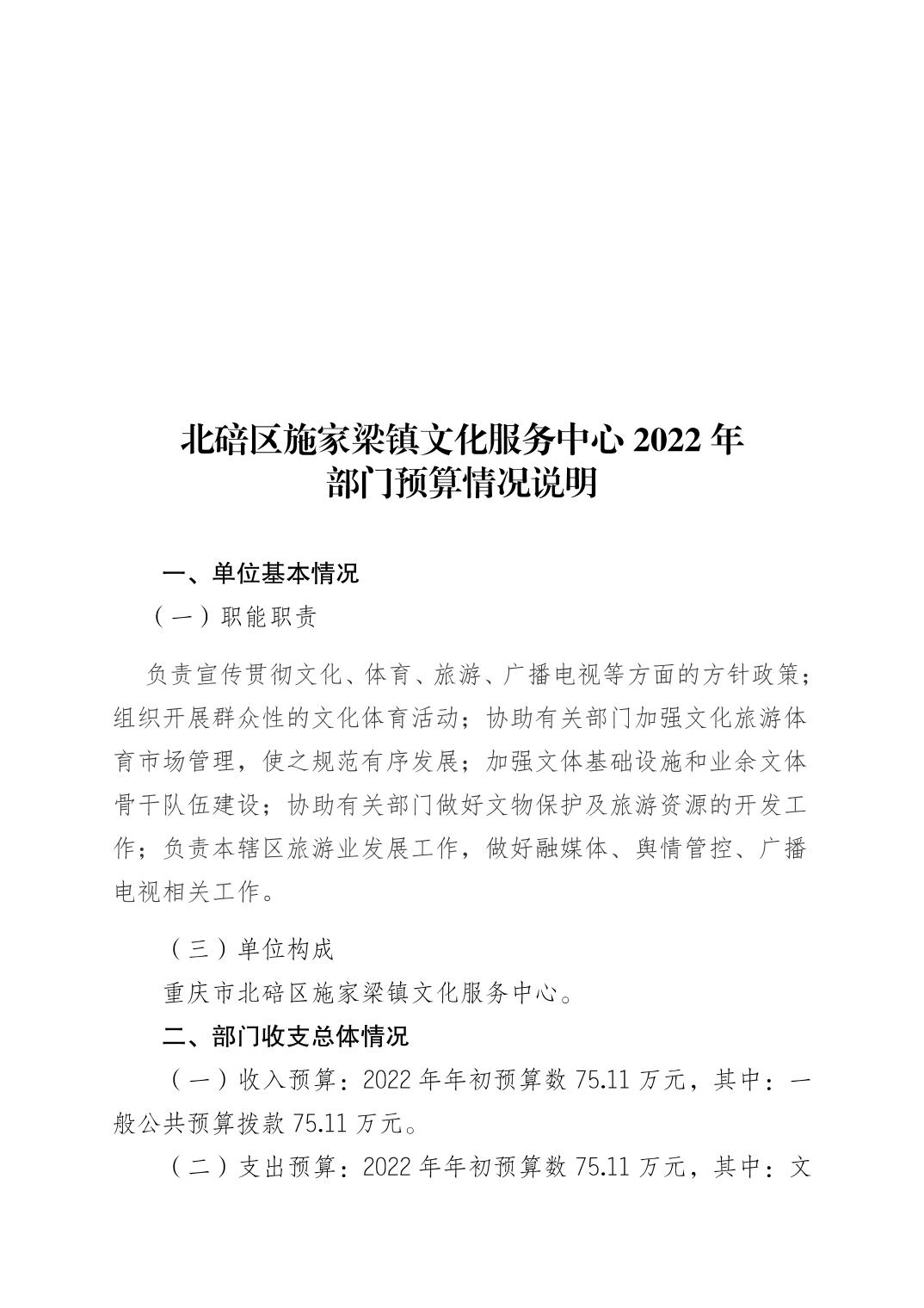 重庆市北碚区施家梁镇人民政府2022年部门预算情况说明
