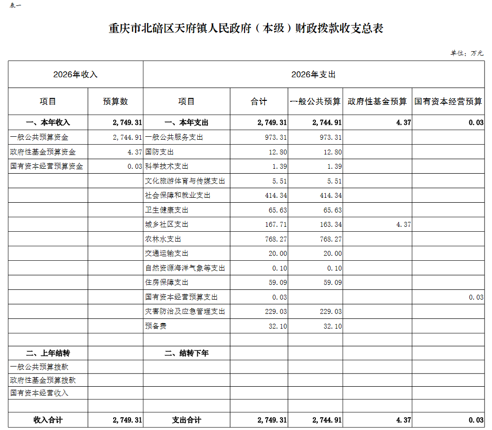 重庆市北碚区天府镇人民政府(本级)2026年单位预算情况说明及附表.pdf