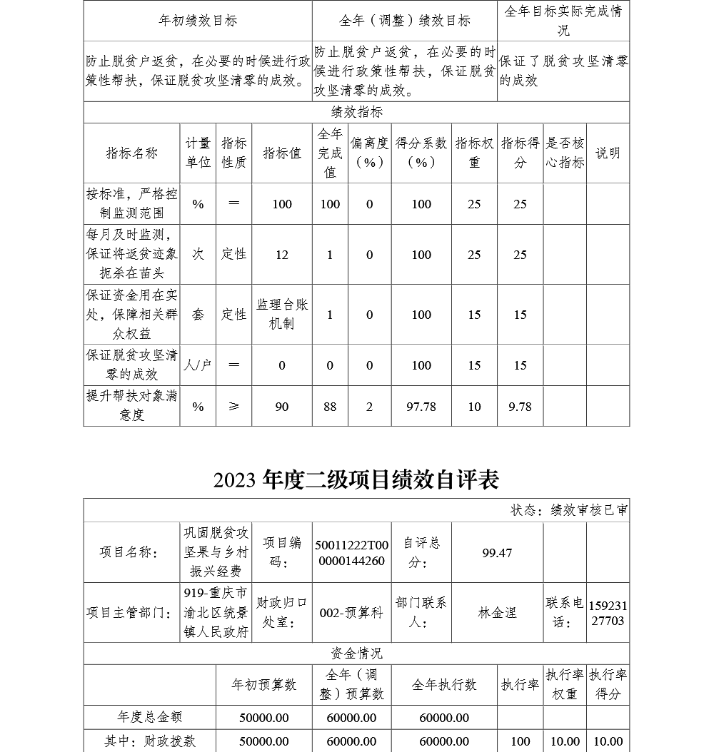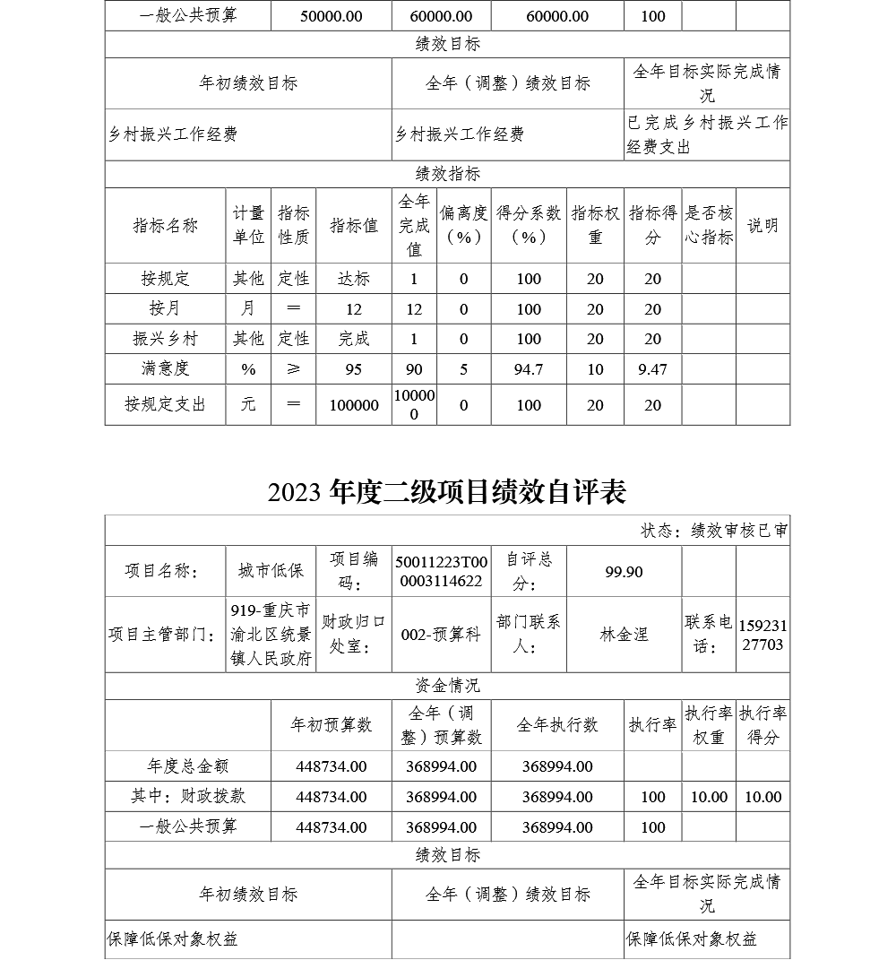 重庆市渝北区统景镇人民政府2023年部门决算公开