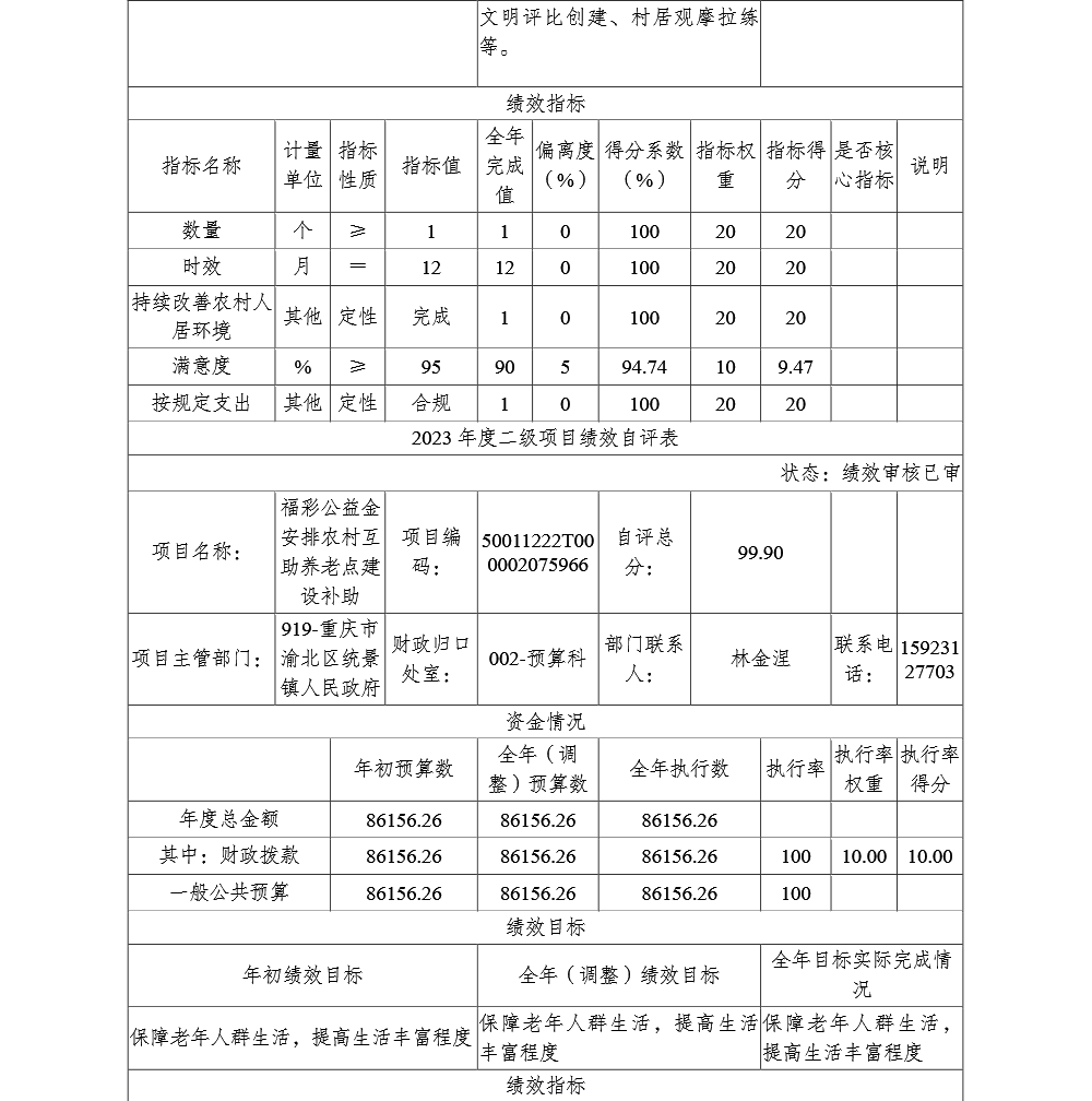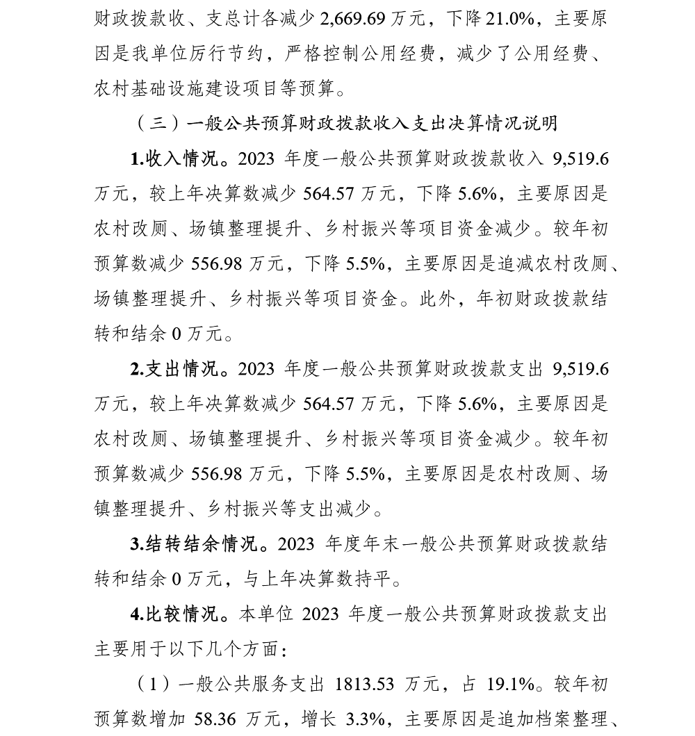 重庆市渝北区统景镇人民政府(本级)2023年部门决算公开