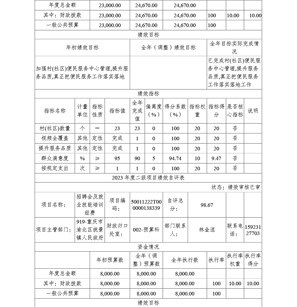 重庆市渝北区统景镇劳动就业和社会保障服务所2023年部门决算公开