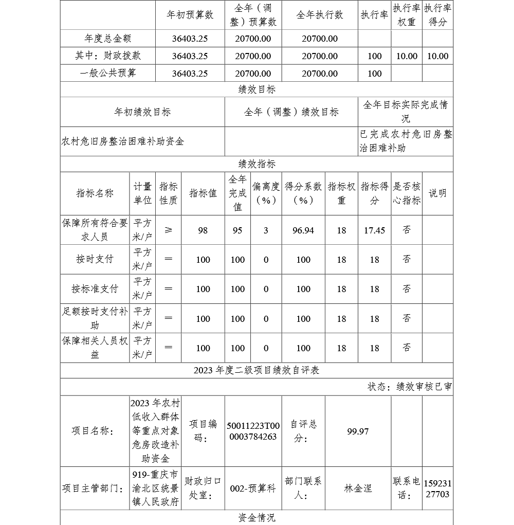 重庆市渝北区统景镇村镇建设服务中心2023年部门决算公开