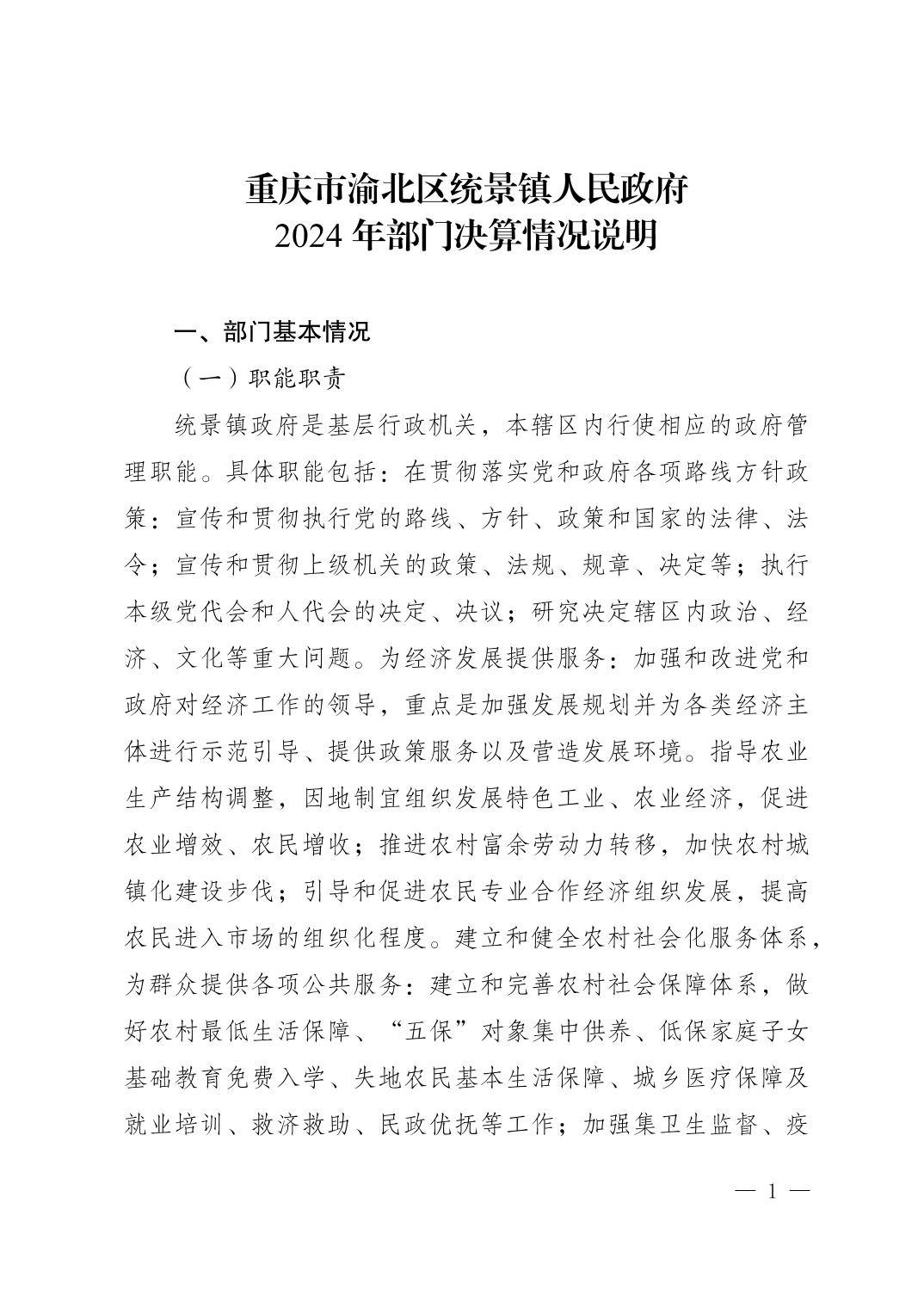 重庆市渝北区统景镇人民政府2024年部门决算情况说明