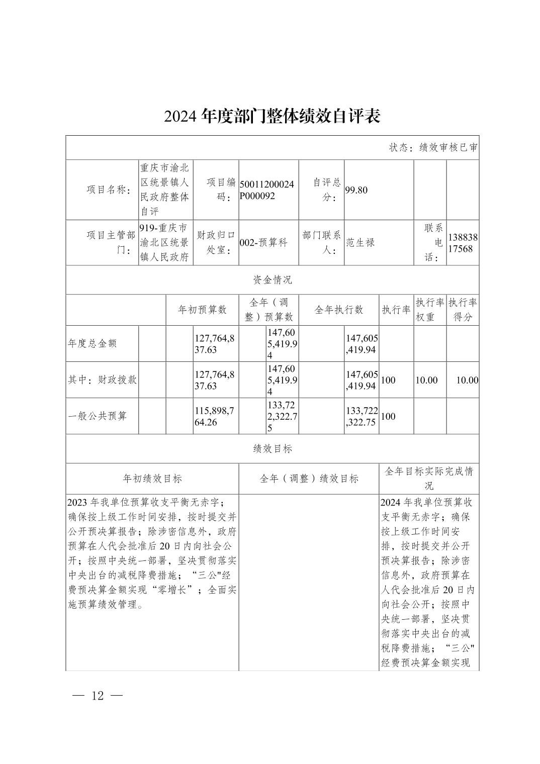 重庆市渝北区统景镇人民政府2024年部门决算情况说明及附表.pdf