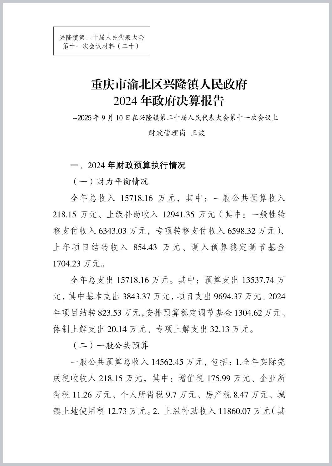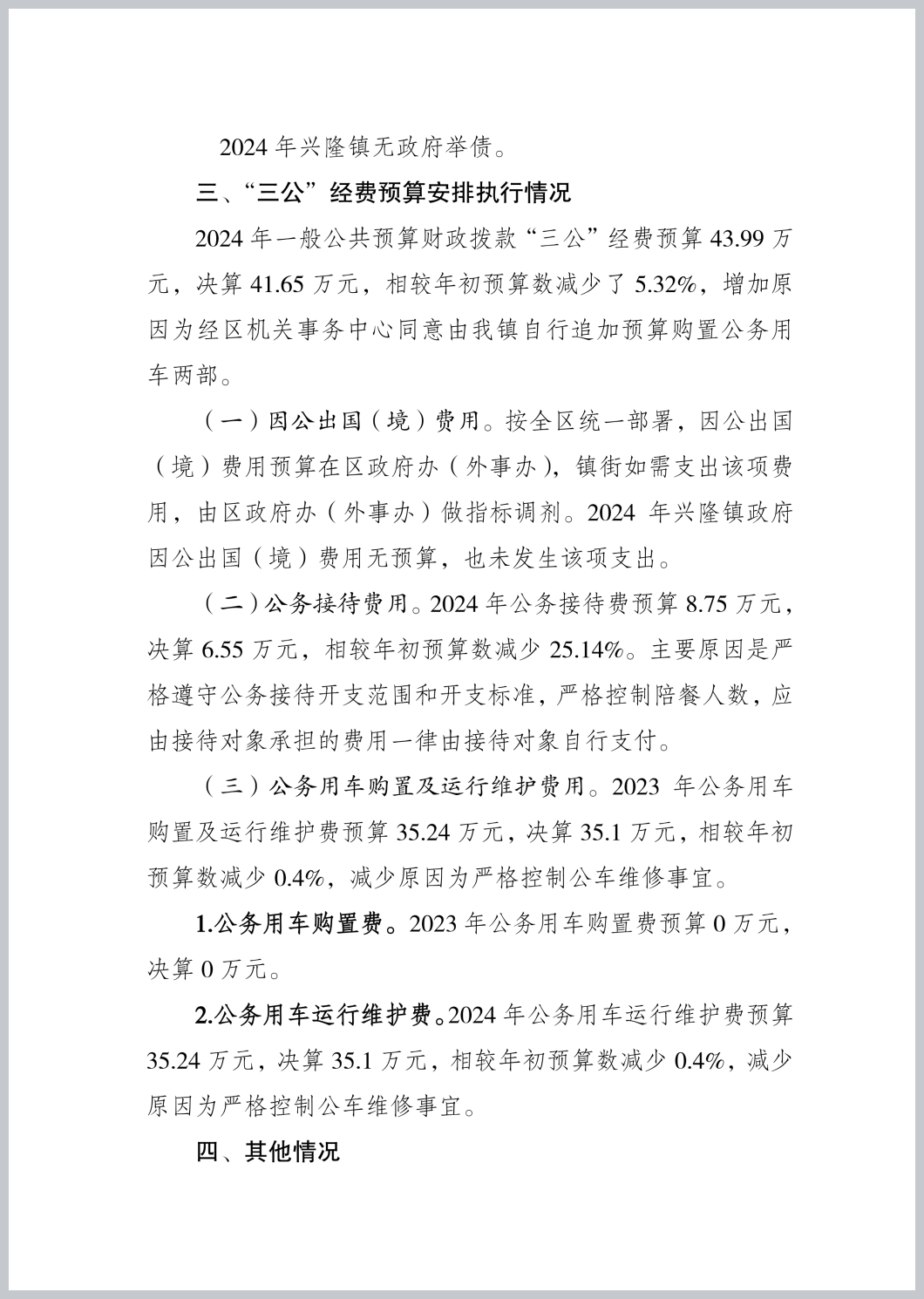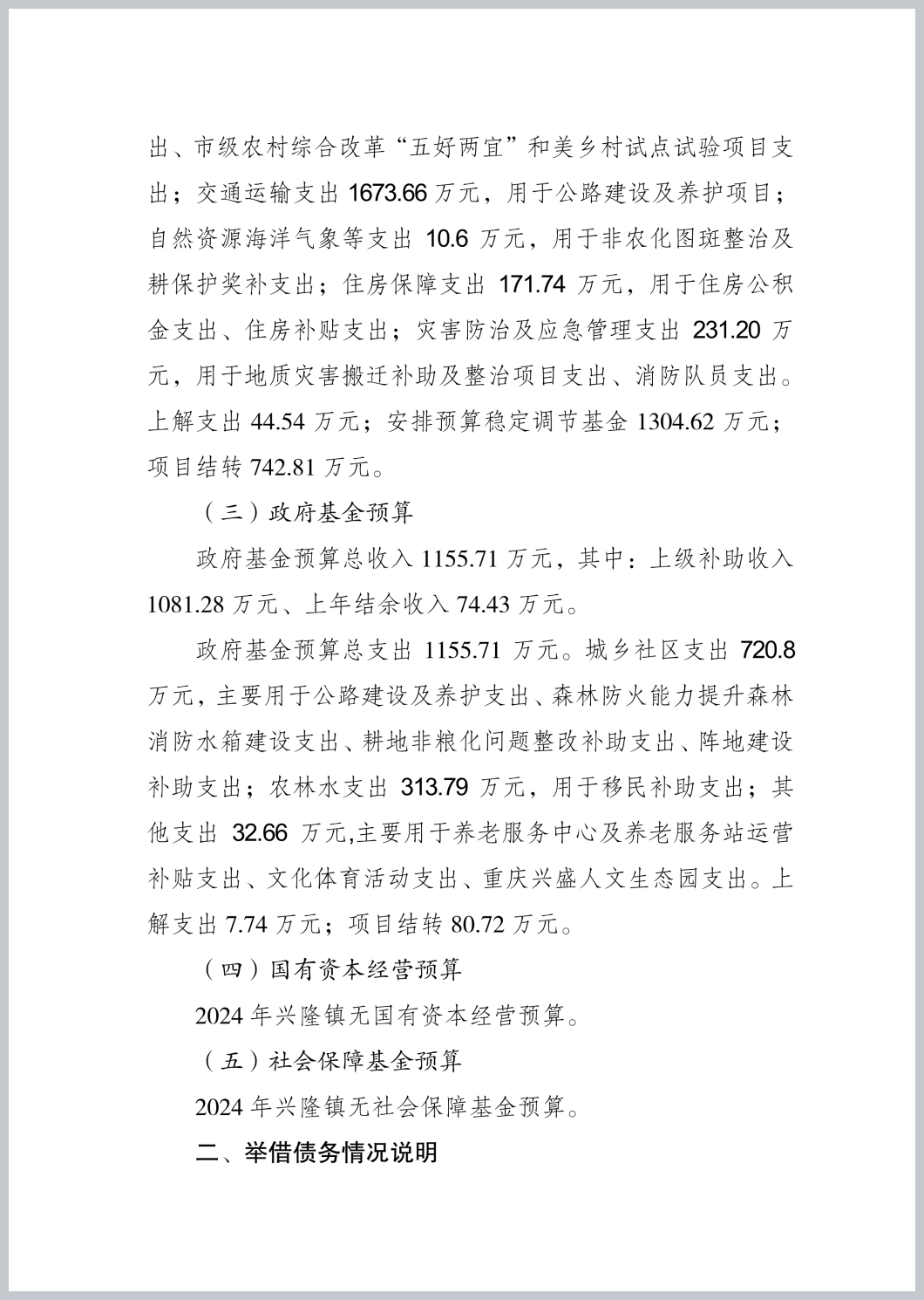重庆市渝北区兴隆镇人民政府2024年政府决算公开