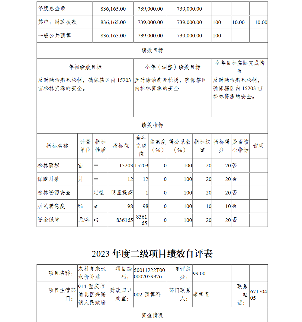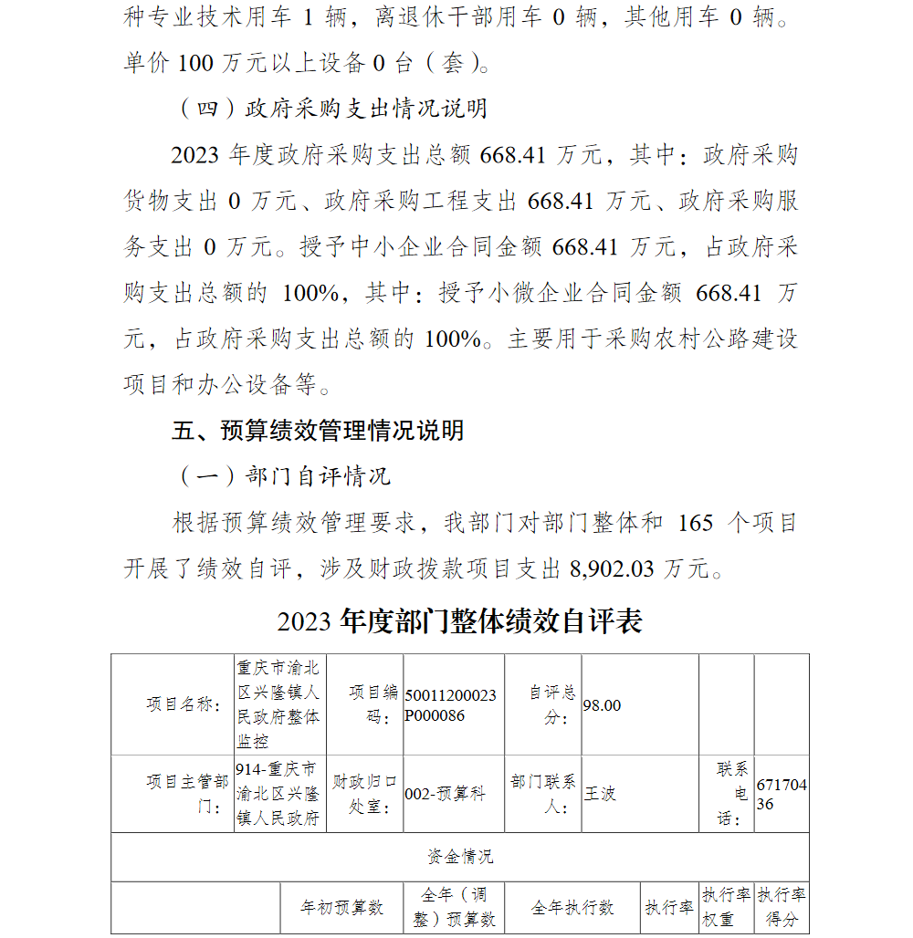 重庆市渝北区兴隆镇人民政府2023年部门决算公开