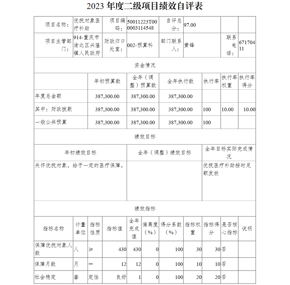重庆市渝北区兴隆镇退役军人服务站2023年部门决算公开