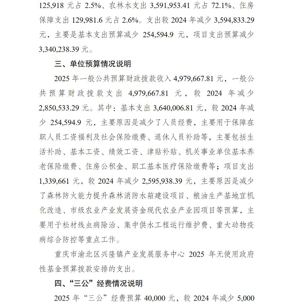 重庆市渝北区兴隆镇产业发展服务中心2025年单位预算情况说明