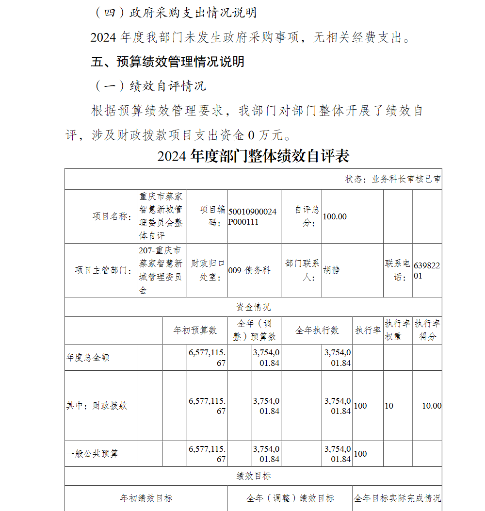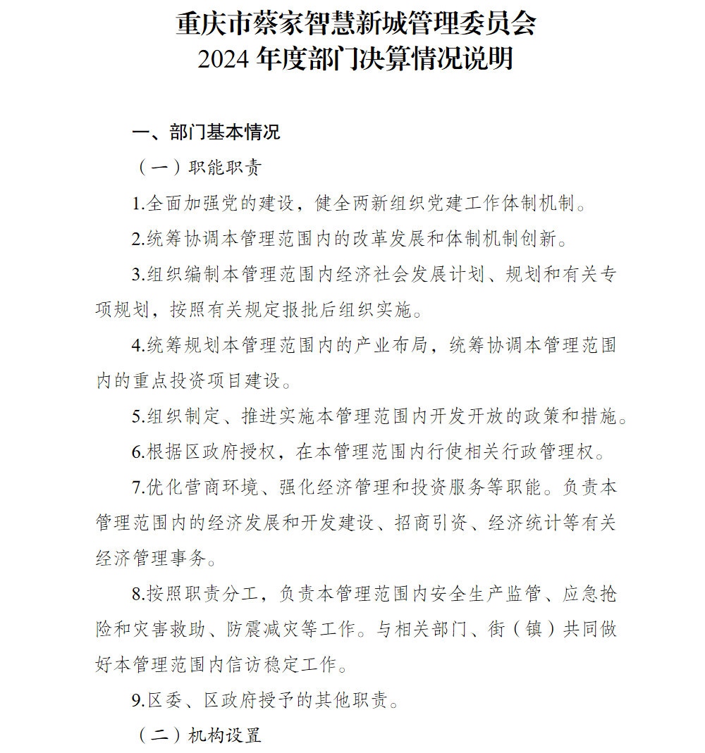 重庆市蔡家智慧新城管理委员会2024年部门决算情况说明及附表.pdf