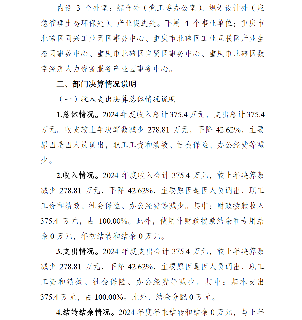 重庆市蔡家智慧新城管理委员会2024年单位决算情况说明