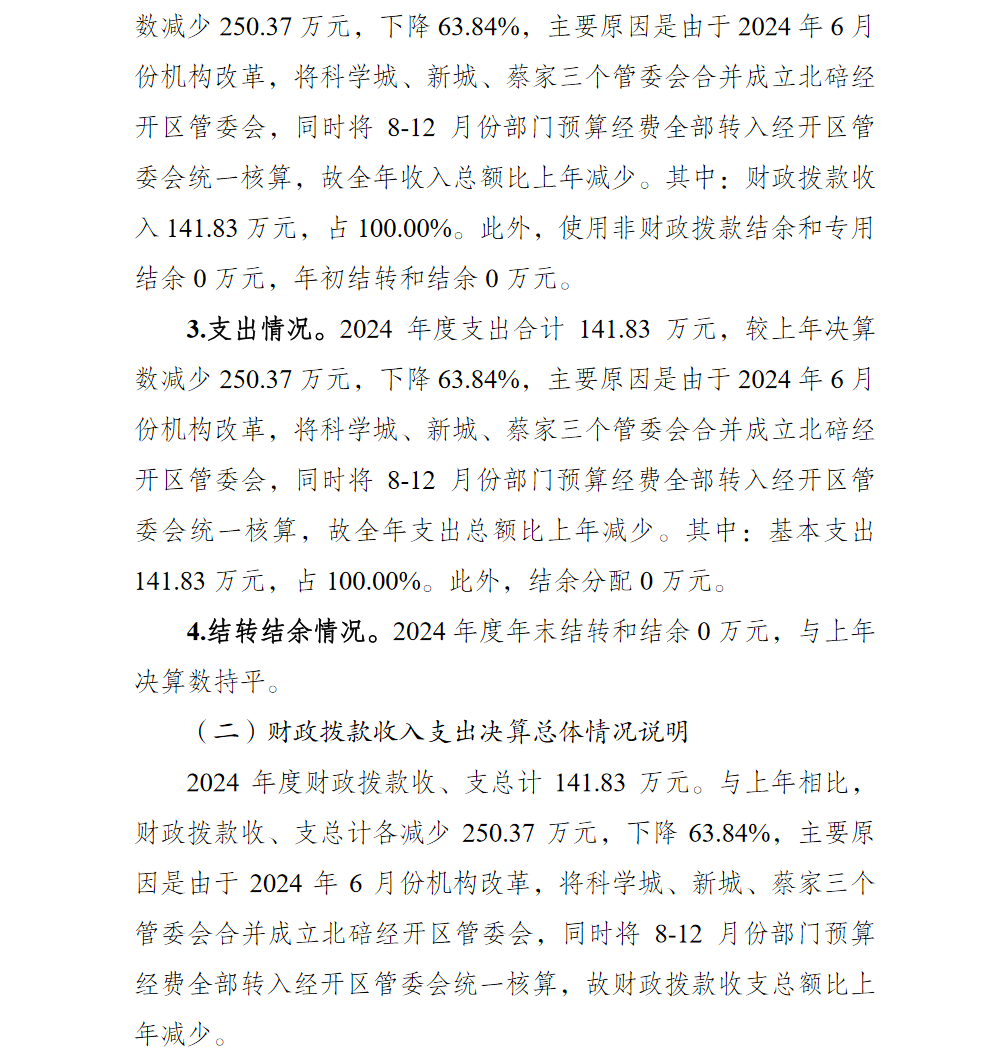 重庆市北碚区缙云人文科技城管理委员会2024年单位决算情况说明
