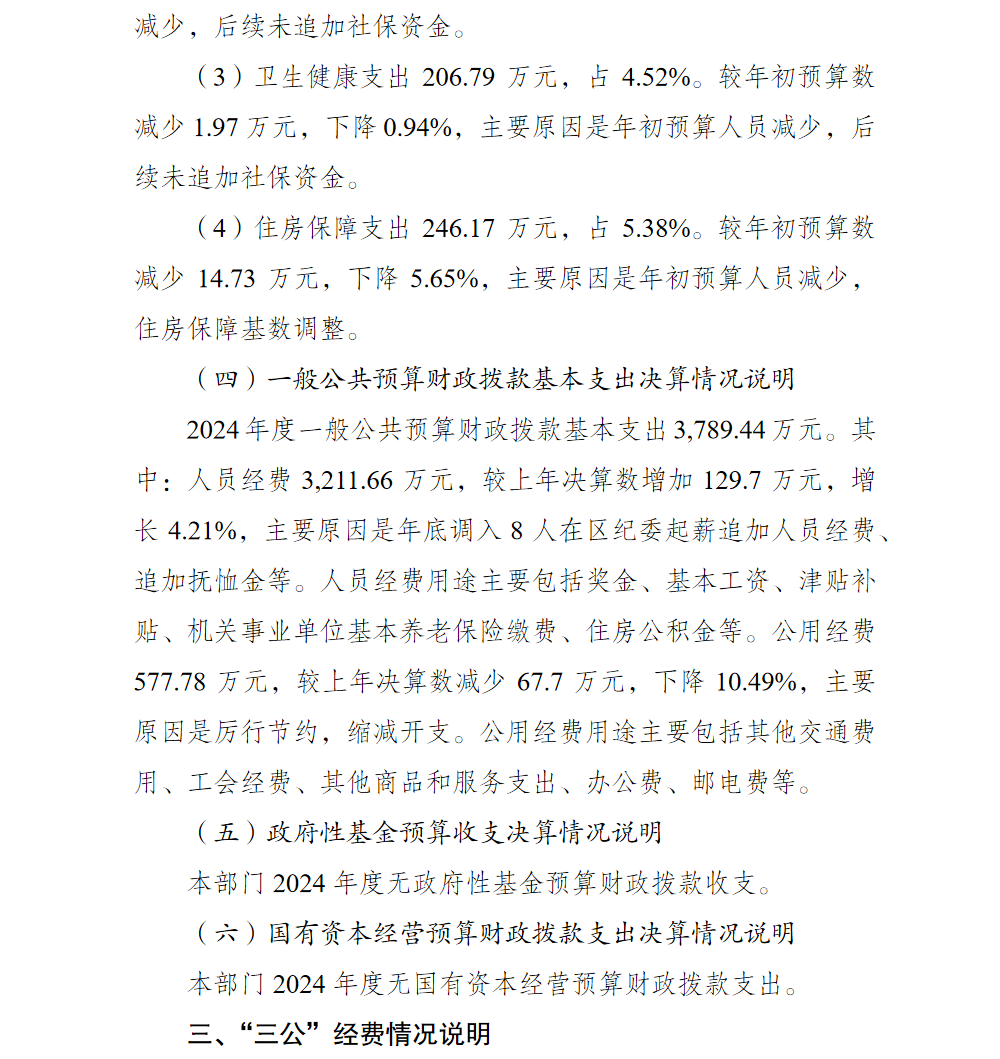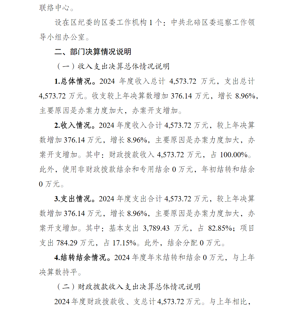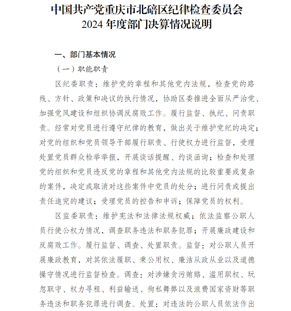 中国共产党重庆市北碚区纪律检查委员会2024年度部门决算情况说明