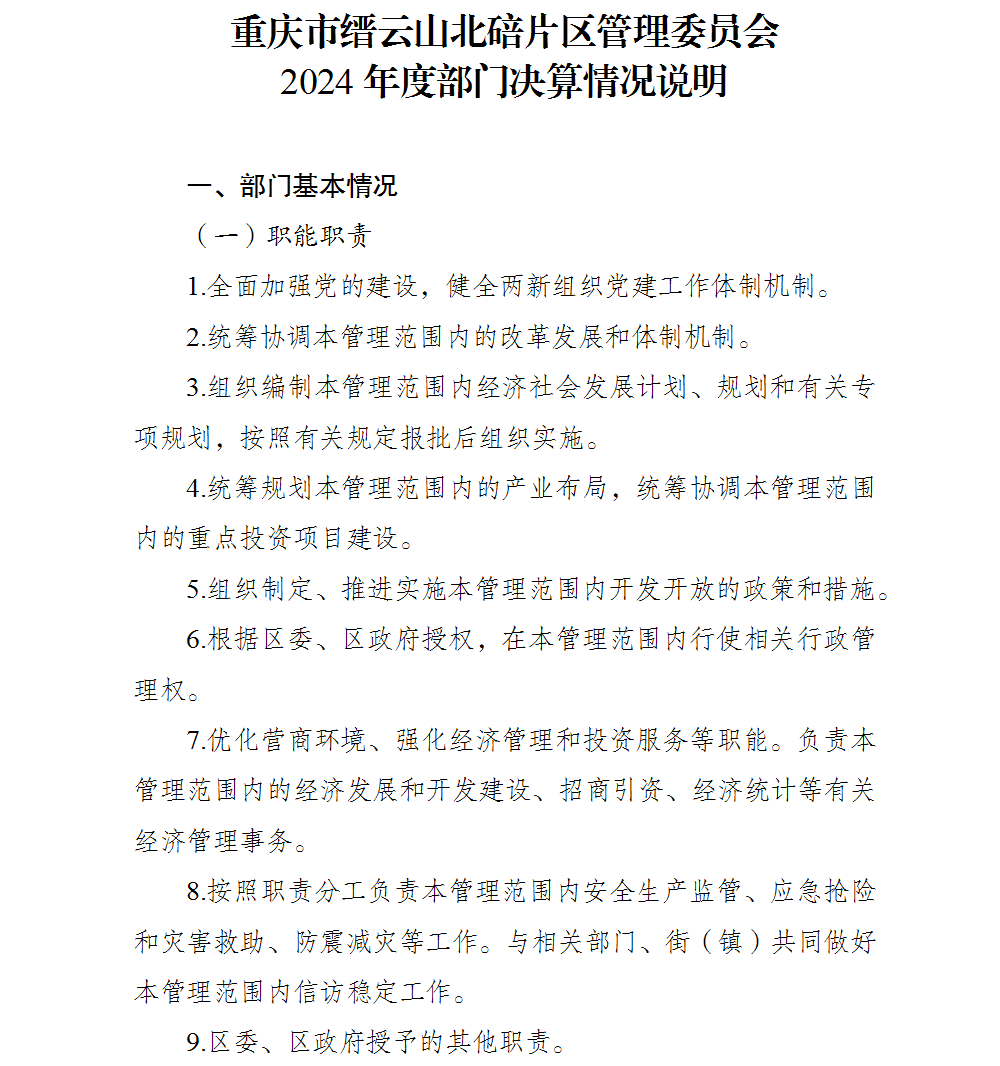 重庆市缙云山北碚片区管理委员会2024年部门决算情况说明及附表.pdf