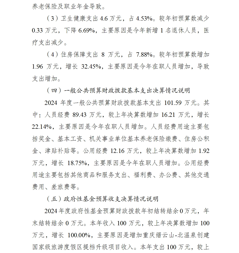 重庆市缙云山北碚片区管理委员会2024年部门决算情况说明