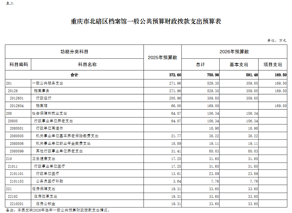 重庆市北碚区档案馆2026年部门预算情况说明及附表.pdf