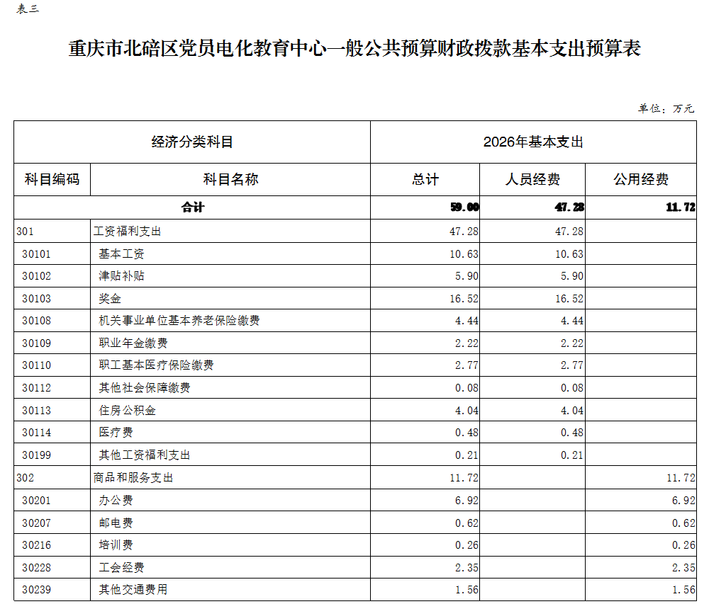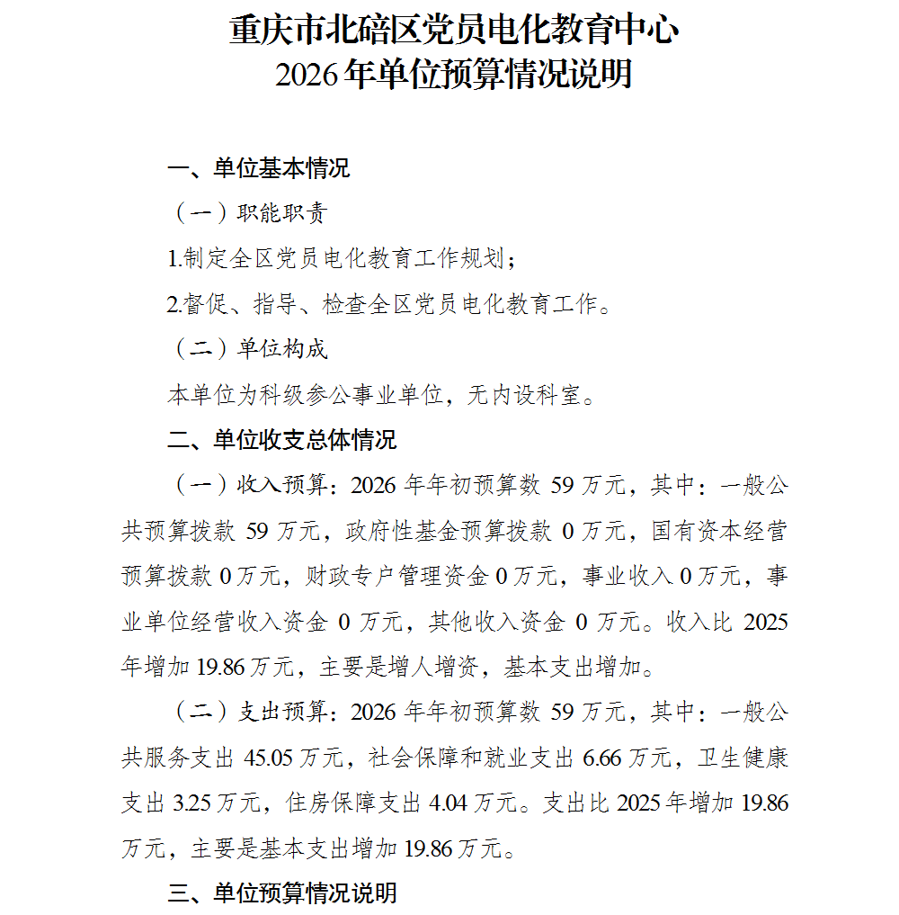 重庆市北碚区党员电化教育中心2026年单位预算情况说明