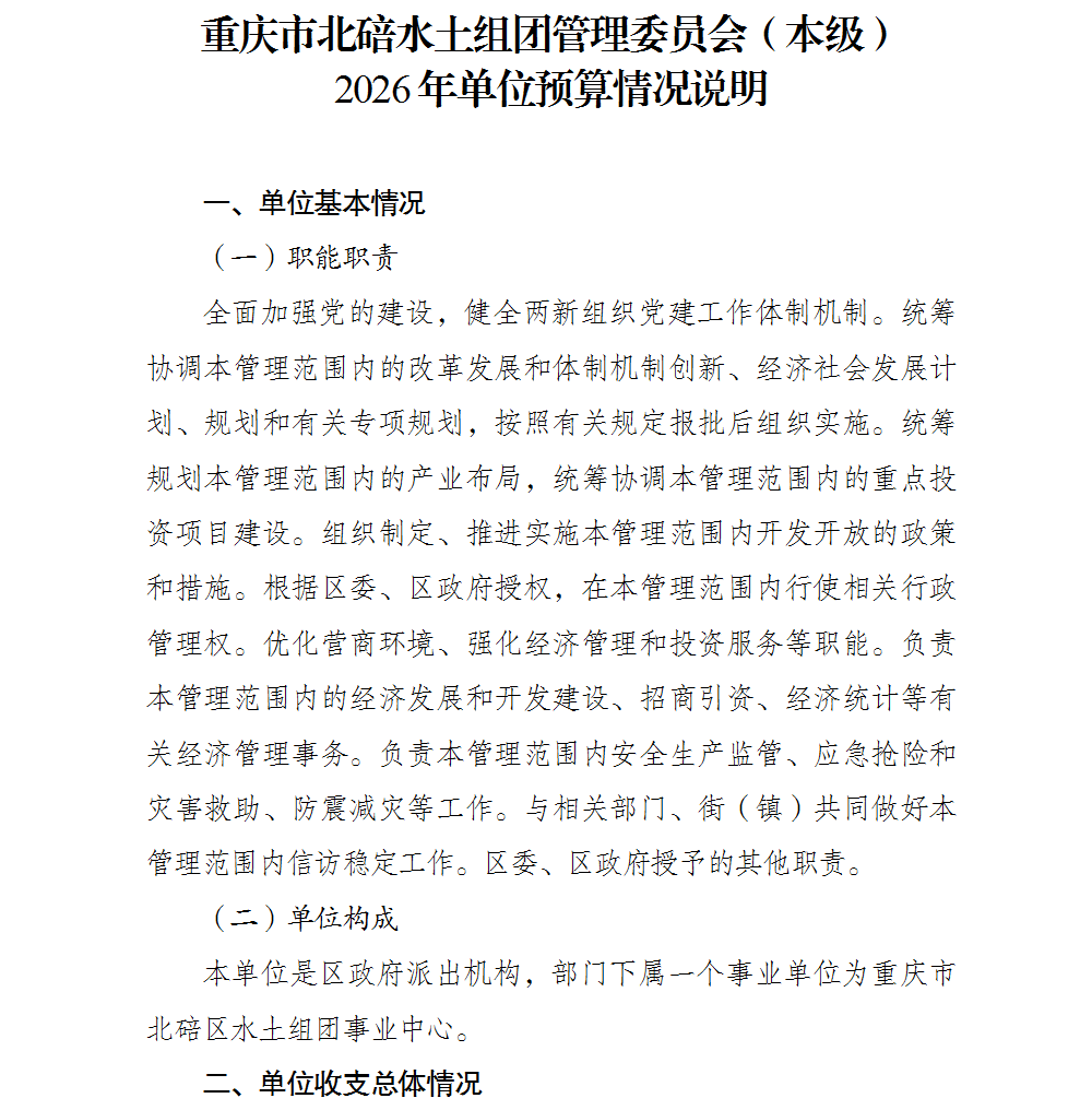 重庆市北碚水土组团管理委员会(本级)2026年单位预算情况说明及附表.pdf