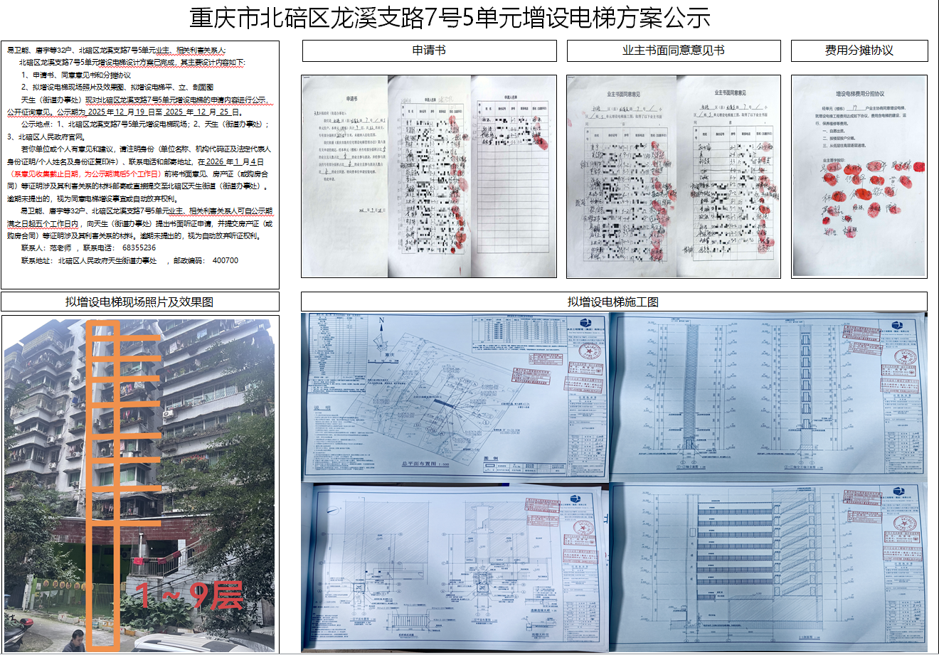 重庆市北碚区龙溪支路7号5单元增设电梯方案公示