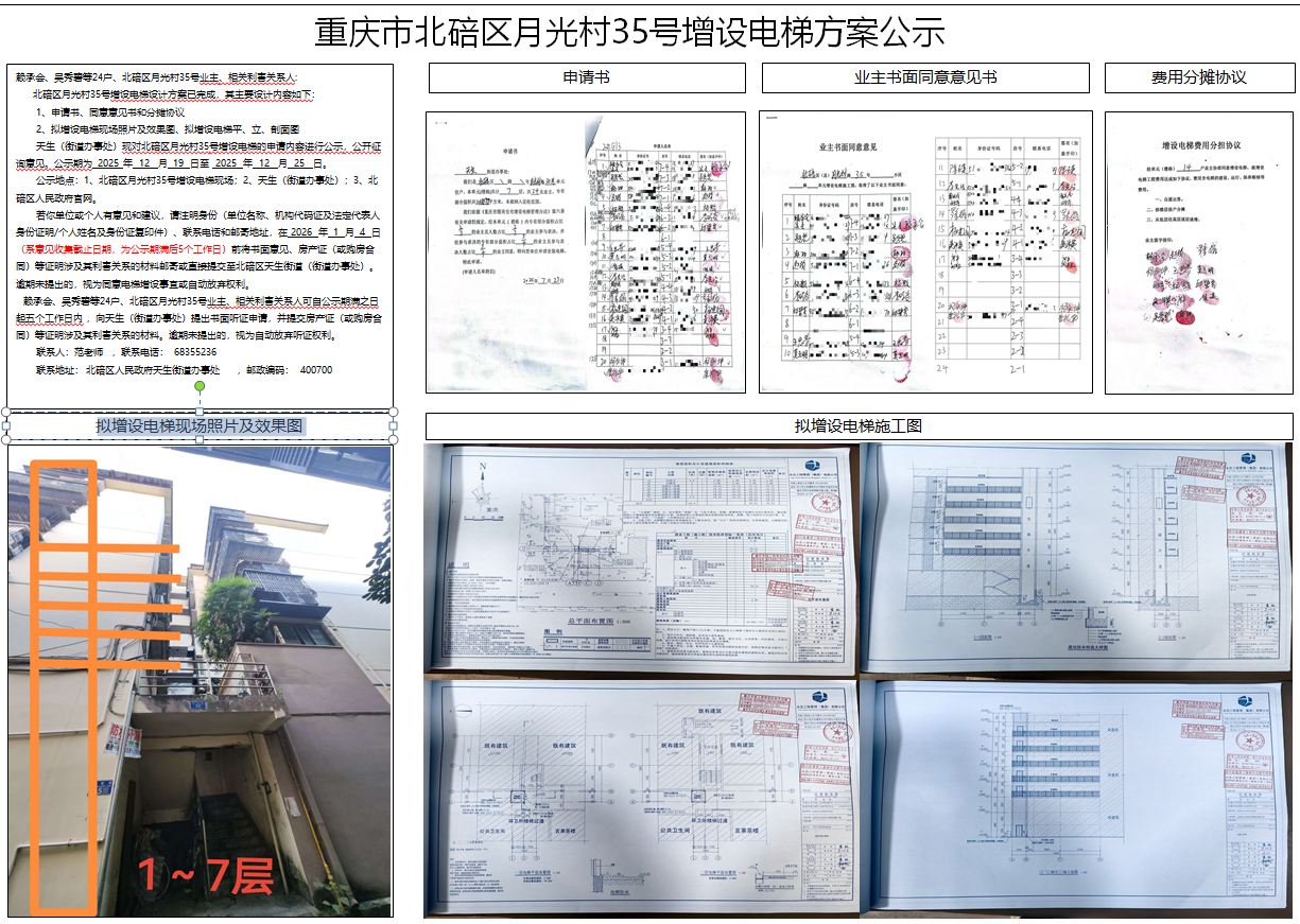 重庆市北碚区月光村35号增设电梯方案公示