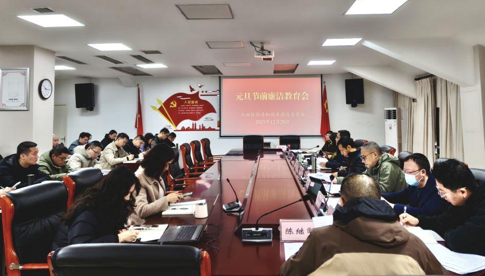12月29日,北碚区住房城乡建委召开元旦节前廉洁教育会。在家委领导出席会议,各科室(单位)负责人参加会议。