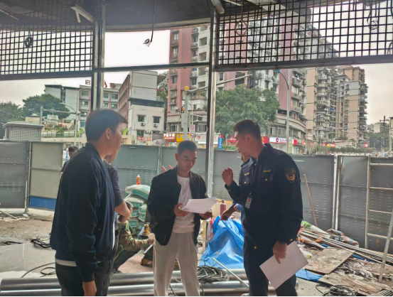 五、10月30日上午,街道城建中心联合综合行政执法大队对辖区农业银行装修动火作业开展检查,现场核实相关人员资格证持证情况,并对现场负责人进行动火作业安全教育。
