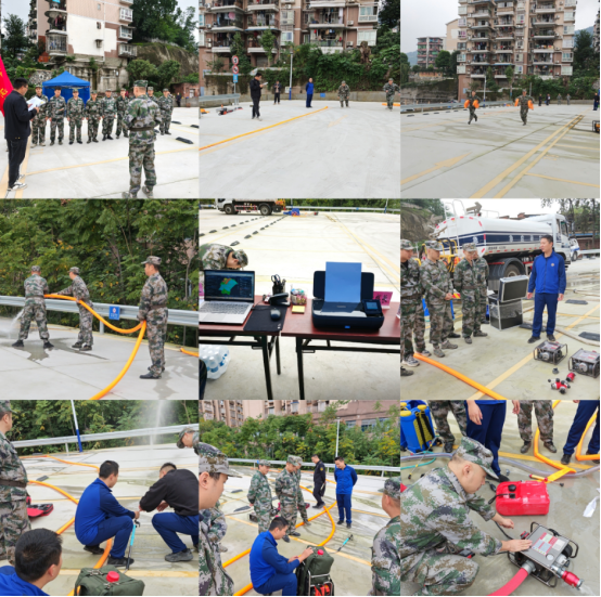 四、11月11日,街道应急救援队伍接受区应急局的应急救援队伍建设与人装融合点验。主要内容包括队伍建设落实情况、临时指挥部搭设、抽查体能训练(100米负重跑、20米折返跑)和设备操作(水泵、油锯),并学践了高压细水雾灭火机和森林消防串联泵架设,提升街道应急救援队伍抢险救灾能力。
