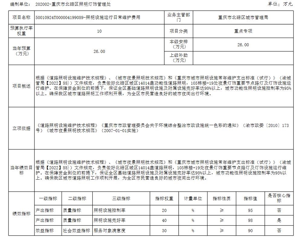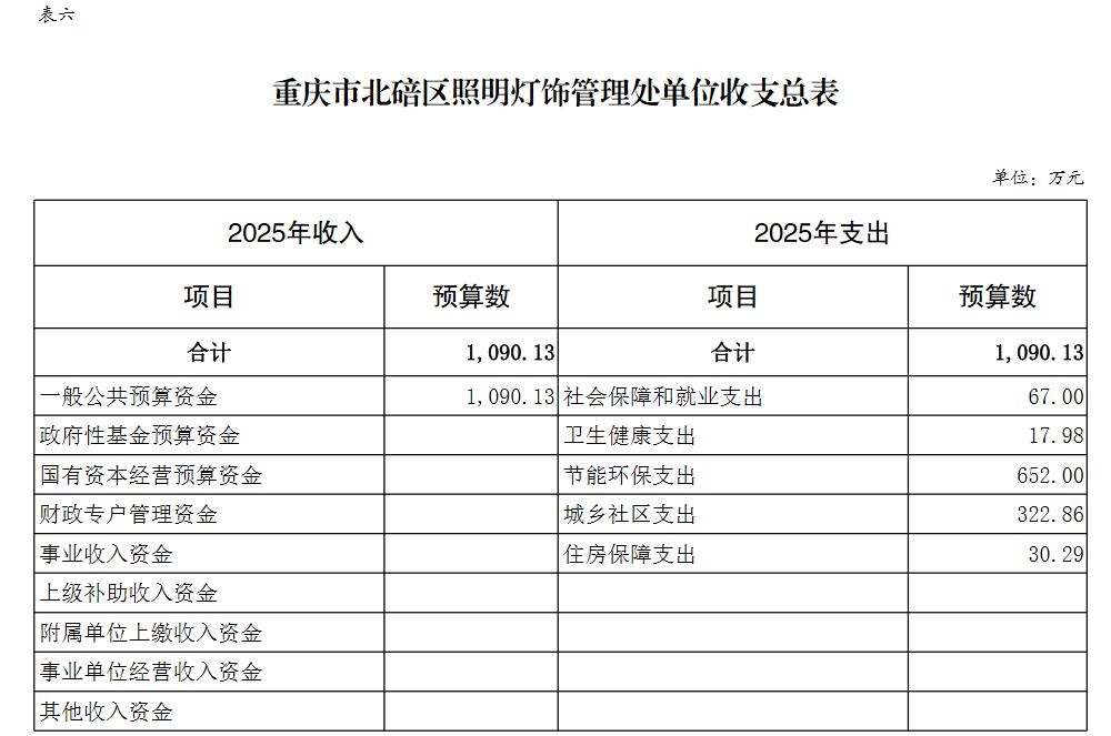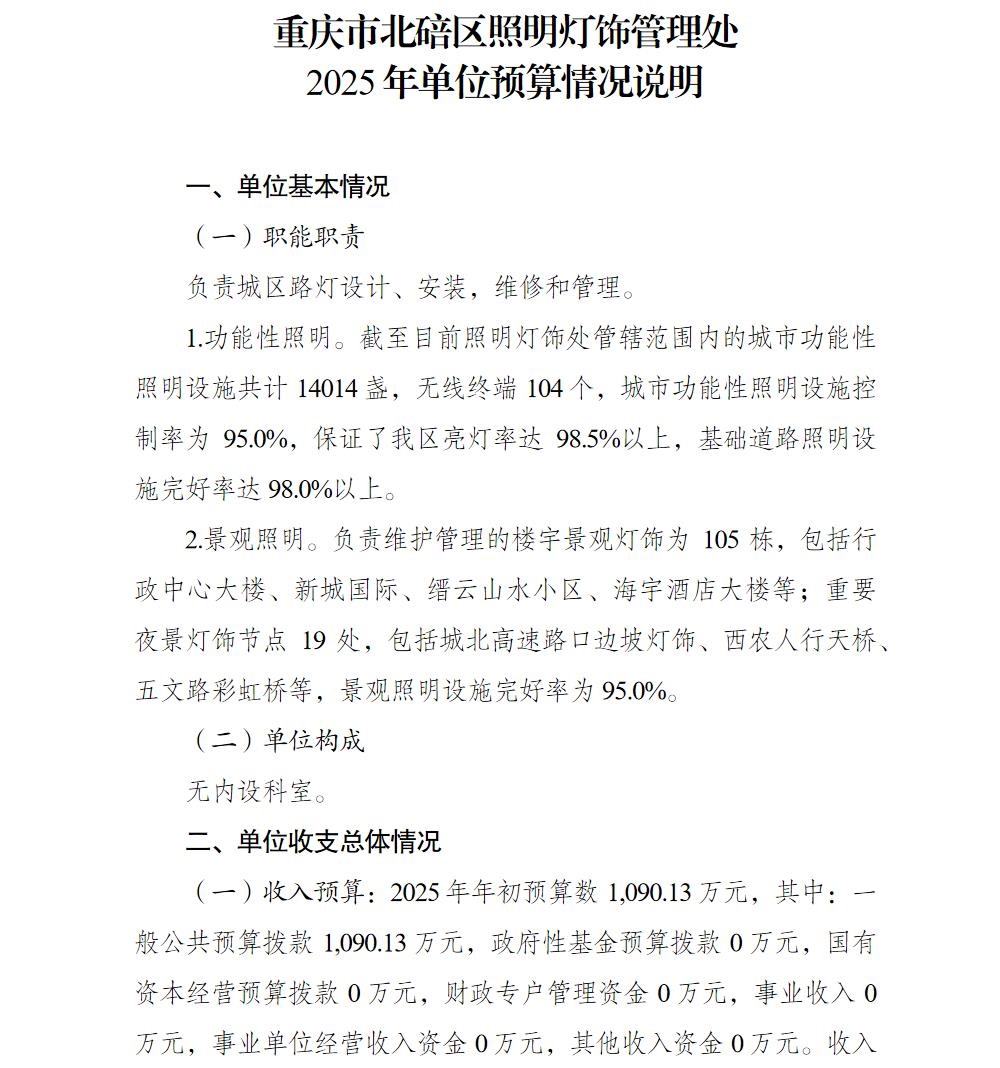重庆市北碚区照明灯饰管理处2025年单位预算情况说明