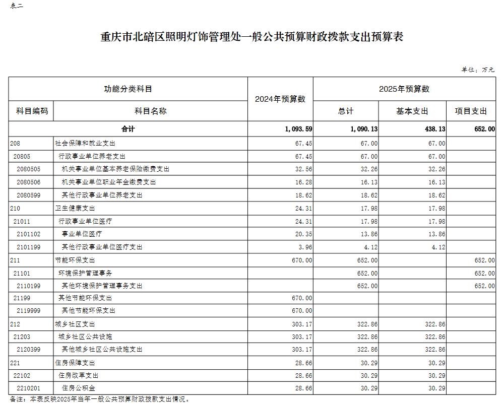 重庆市北碚区照明灯饰管理处2025年单位预算情况说明及附表.pdf