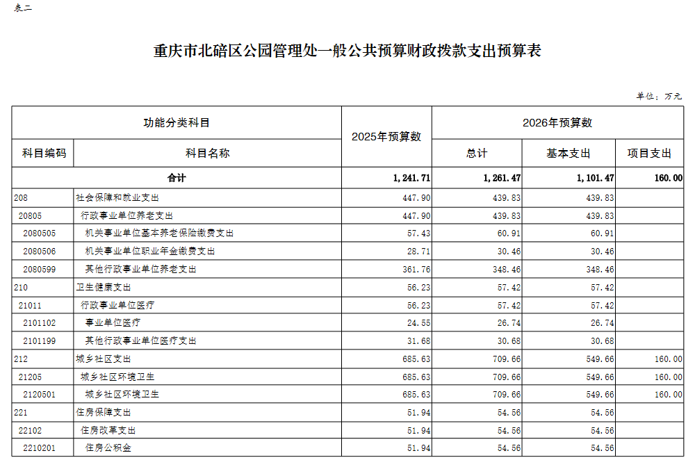 重庆市北碚区公园管理处2026年单位预算情况说明及附表.pdf