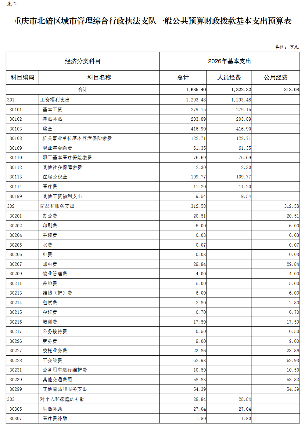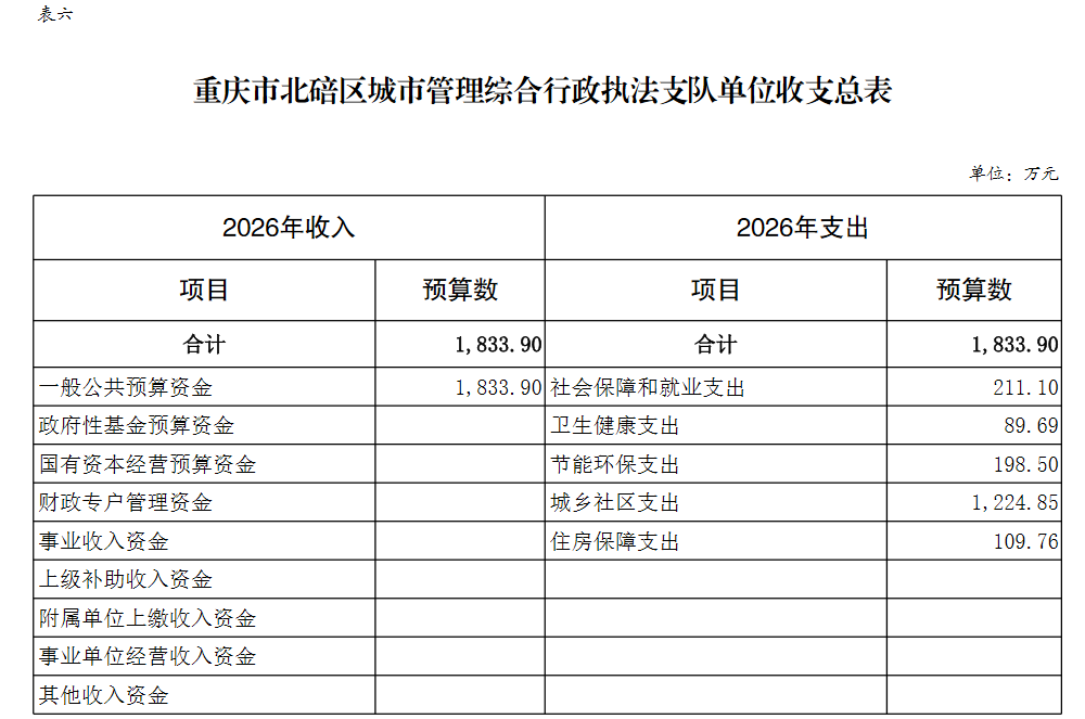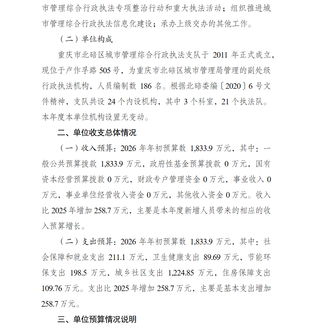 重庆市北碚区城市管理综合行政执法支队2026年单位预算情况说明及附表.pdf