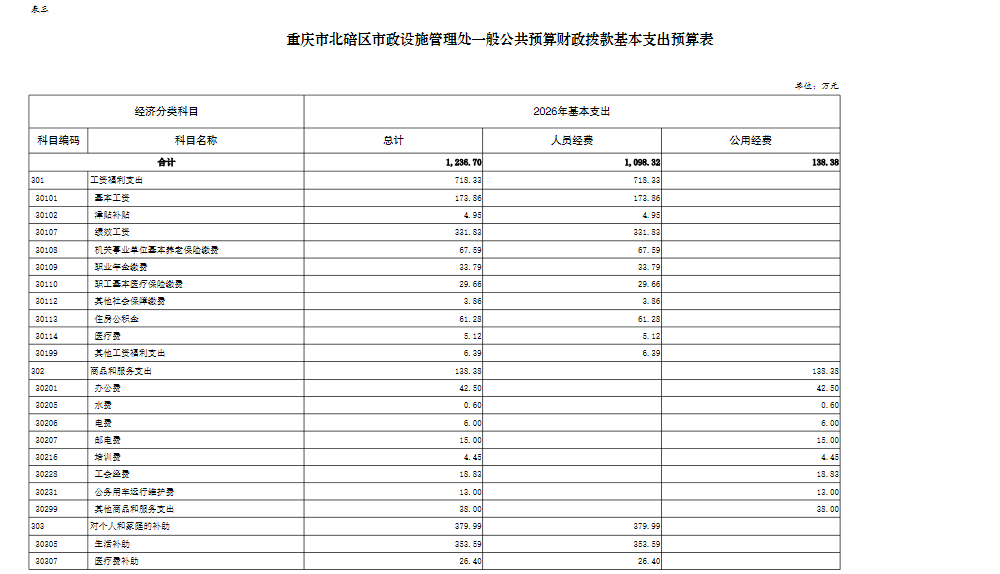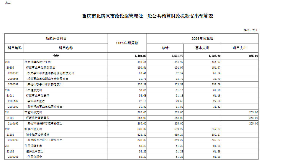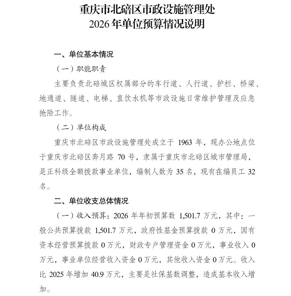 重庆市北碚区市政设施管理处2026年单位预算情况说明及附表.pdf