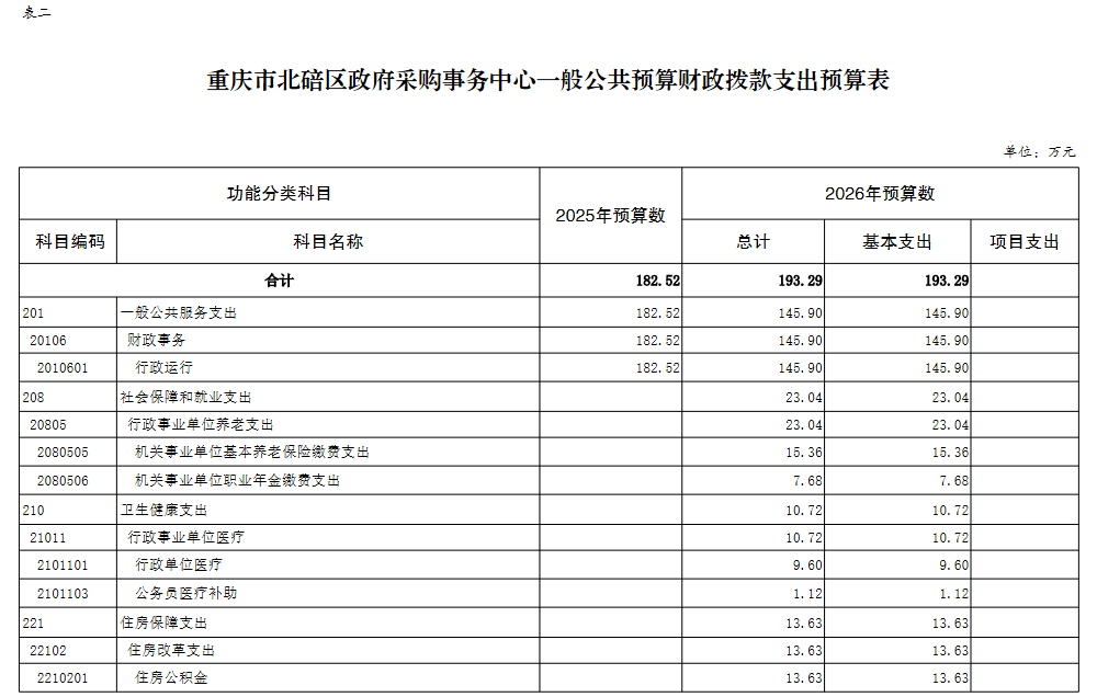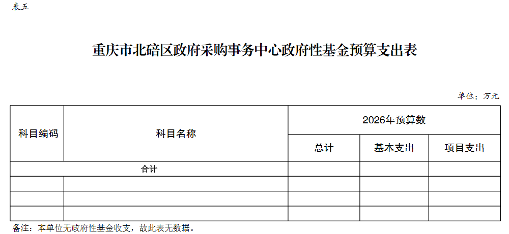 重庆市北碚区政府采购事务中心2026年单位预算情况