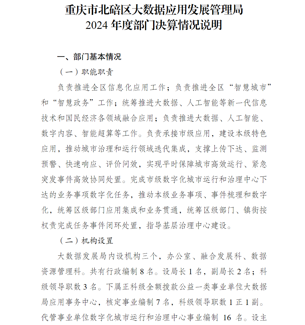 重庆市北碚区大数据应用发展管理局 2024年度部门决算情况说明