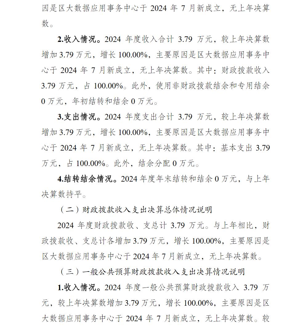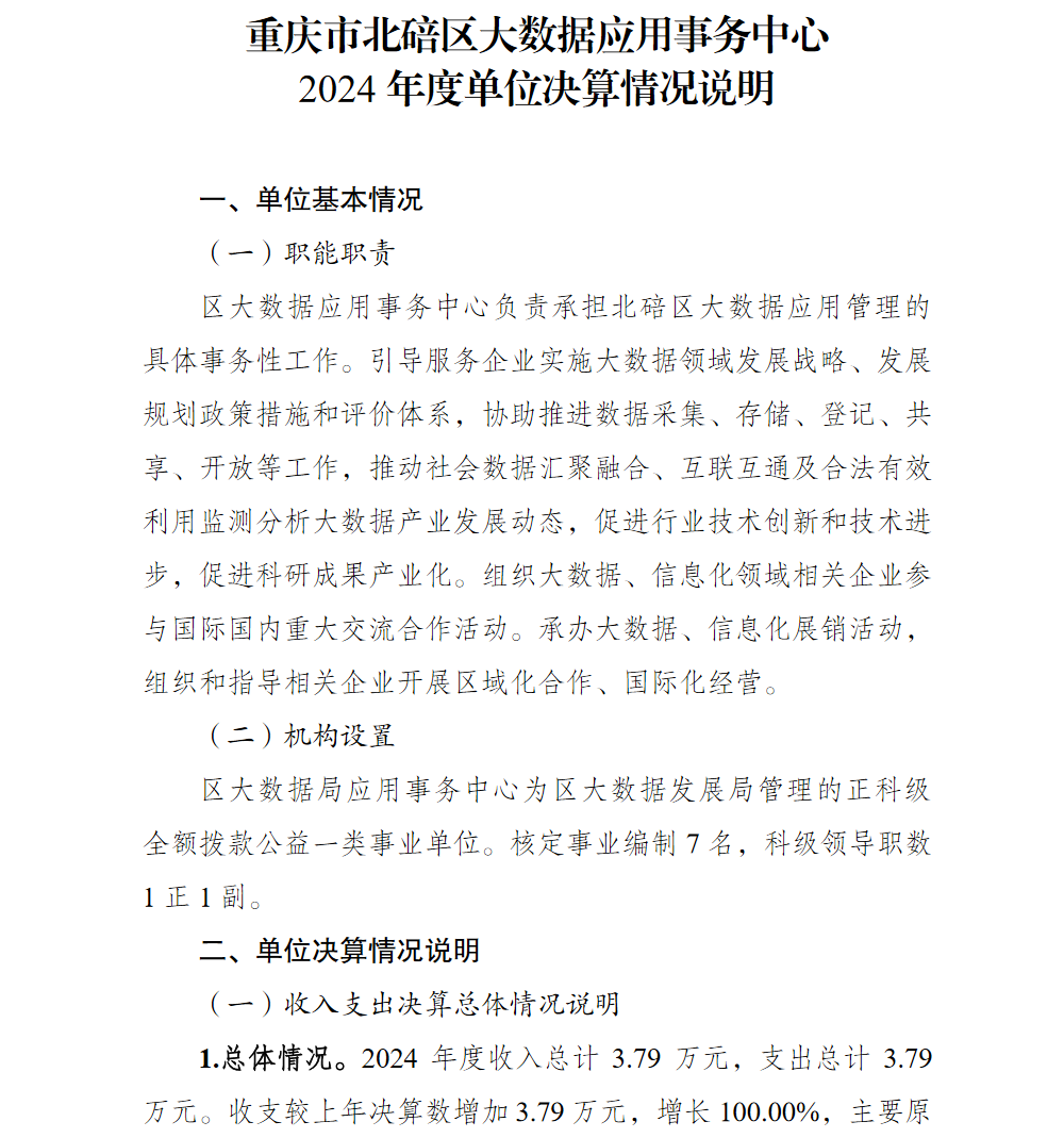 重庆市北碚区大数据应用事务中心 2024年度单位决算情况说明