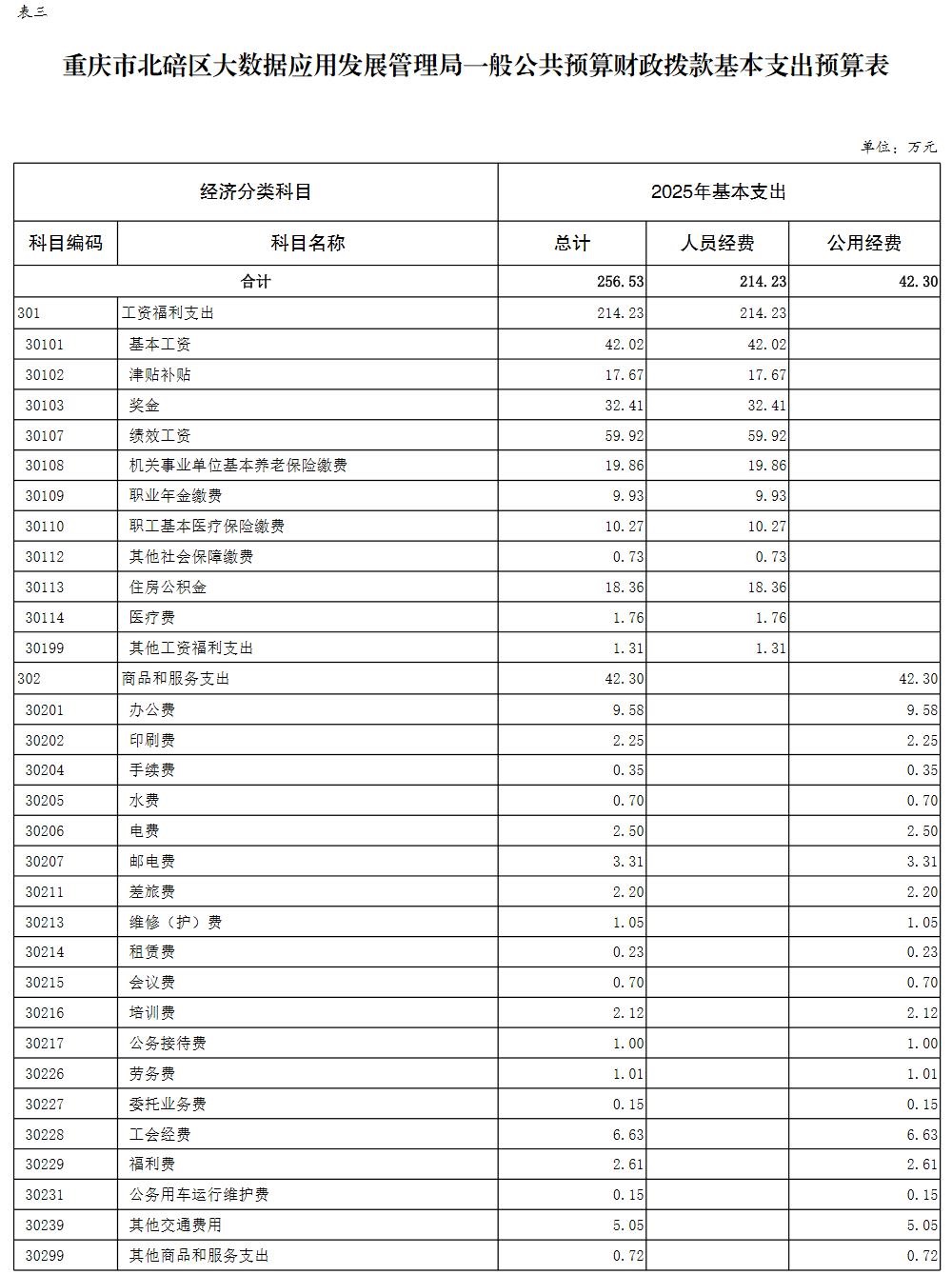 重庆市北碚区大数据应用发展管理局 2025年部门预算情况说明