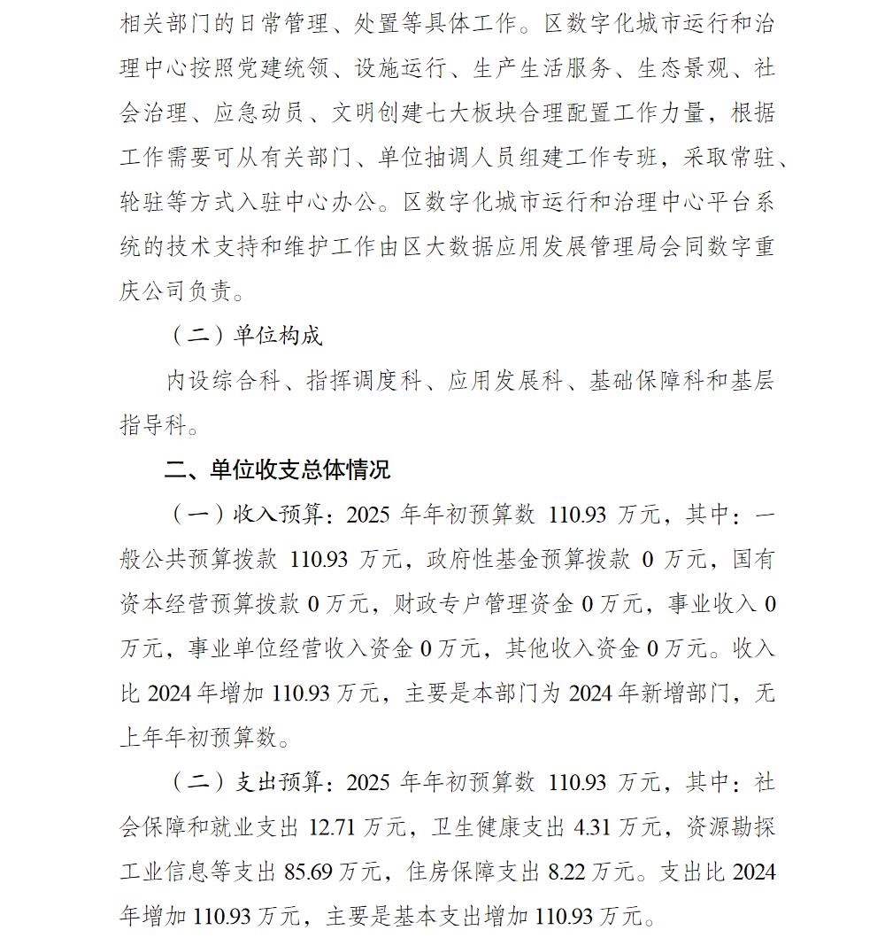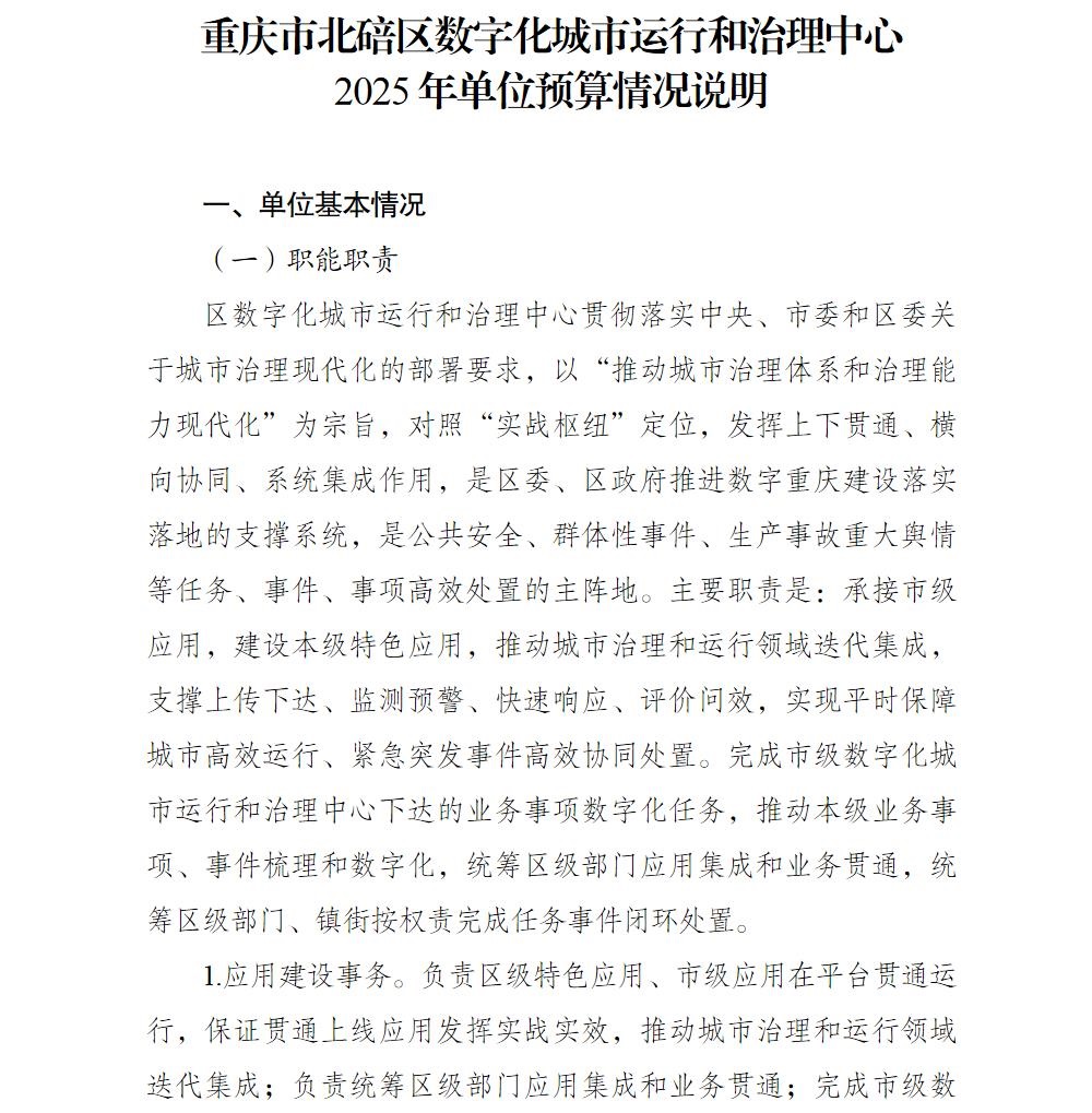 重庆市北碚区数字化城市运行和治理中心 2025年单位预算情况说明