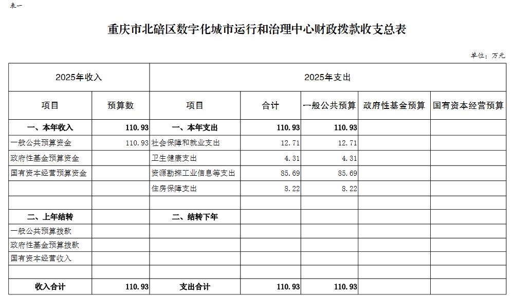 重庆市北碚区数字化城市运行和治理中心2025年单位预算情况说明及附表.pdf