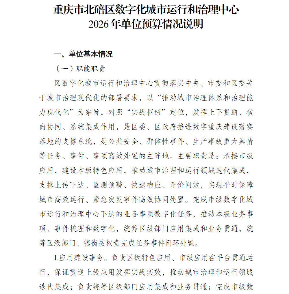 重庆市北碚区数字化城市运行和治理中心2026年单位预算情况说明