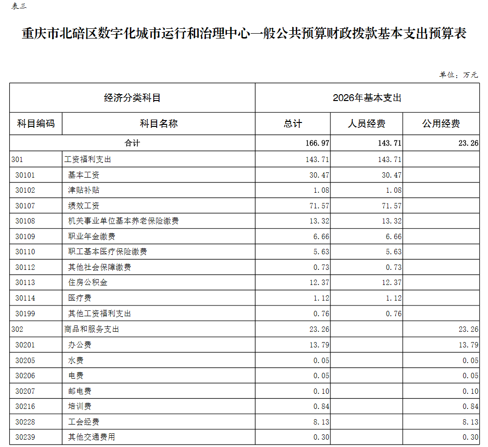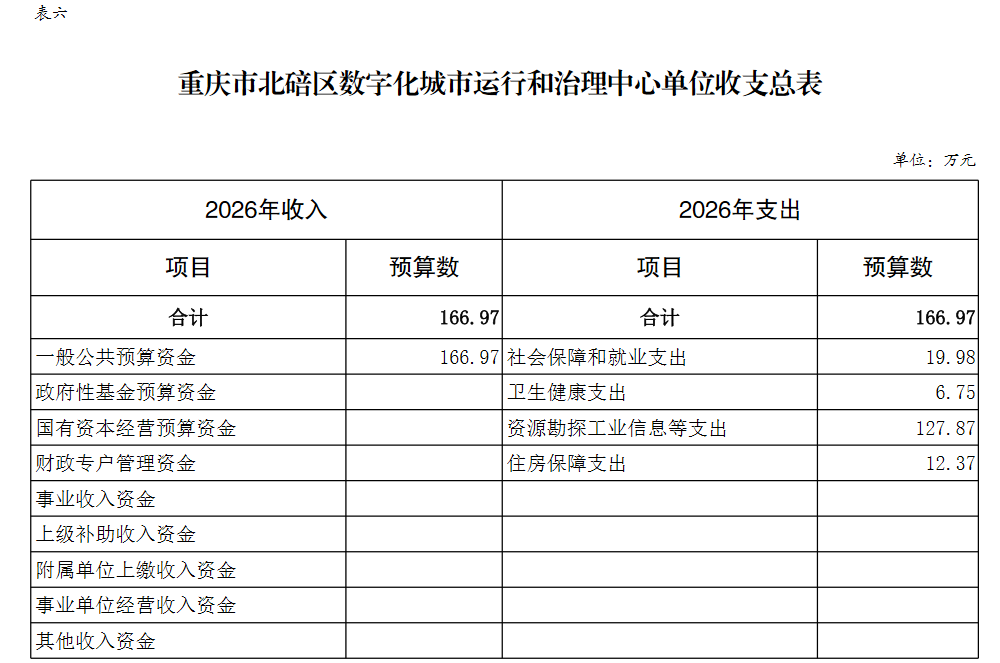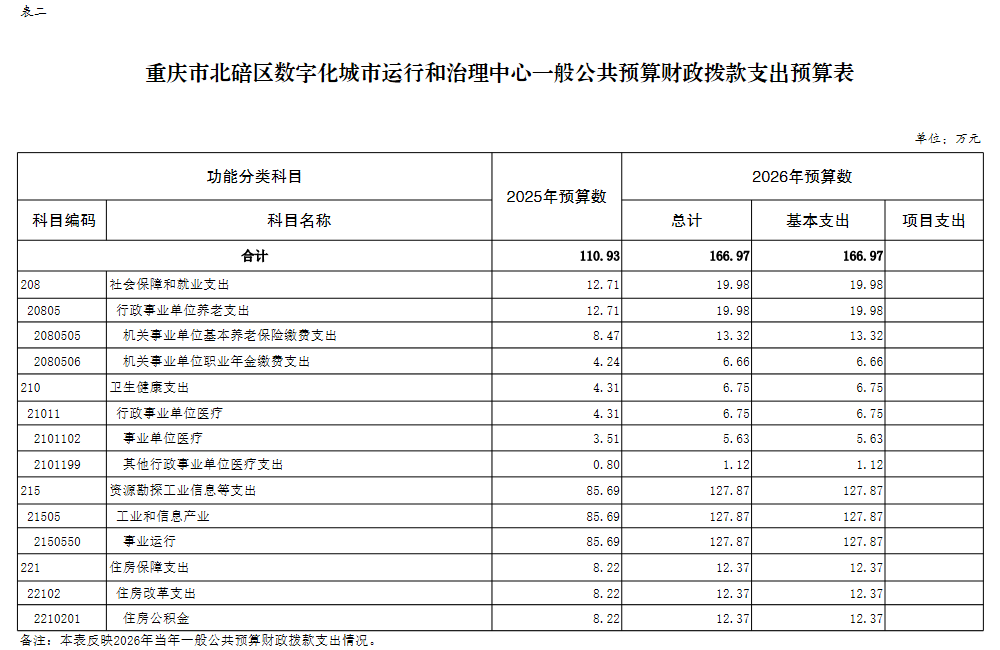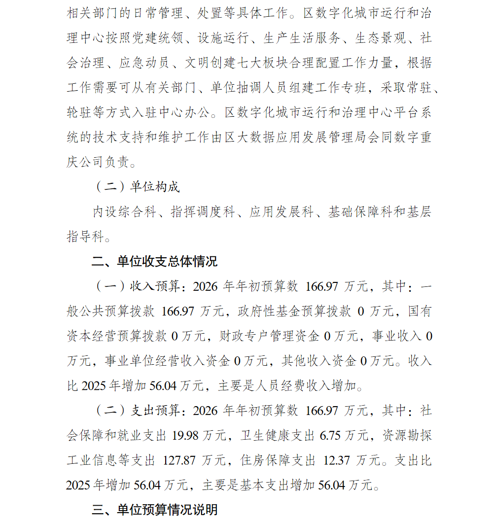 重庆市北碚区数字化城市运行和治理中心2026年单位预算情况说明及附表.pdf