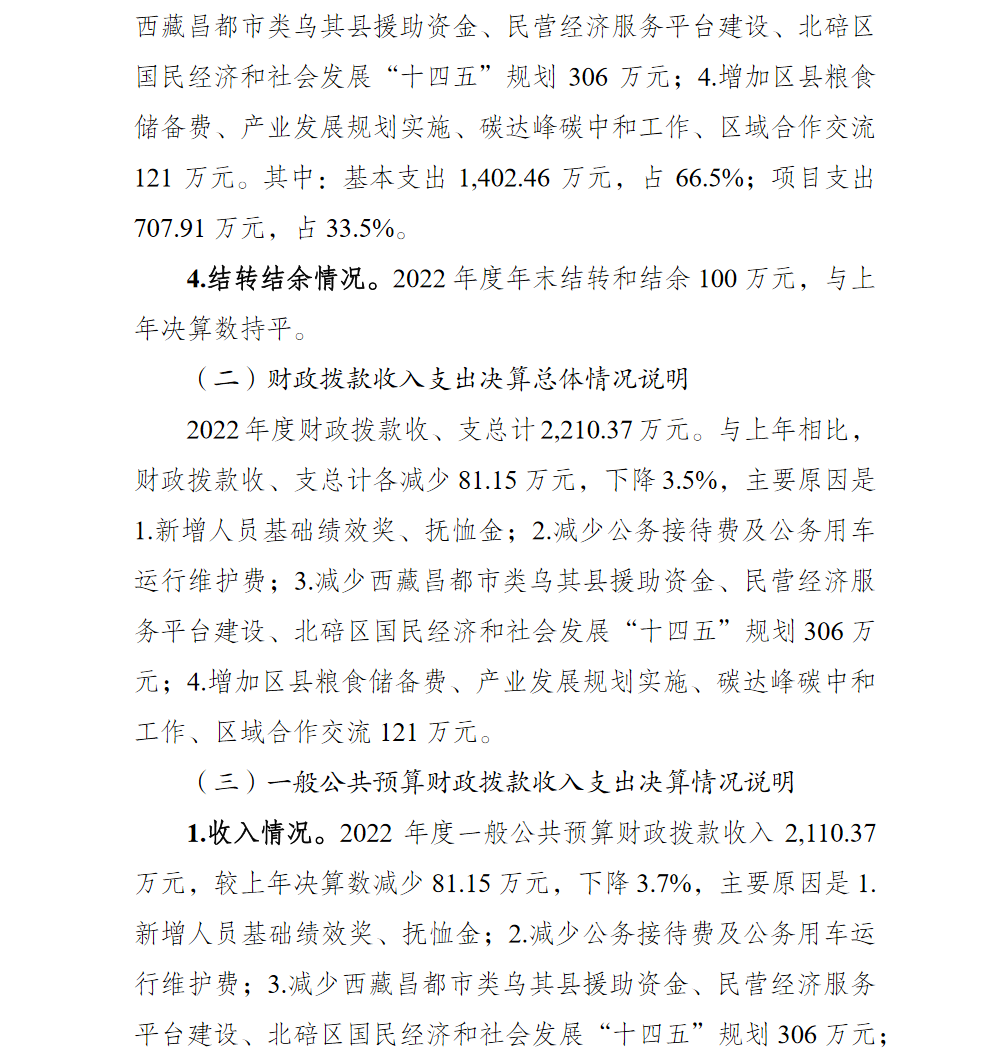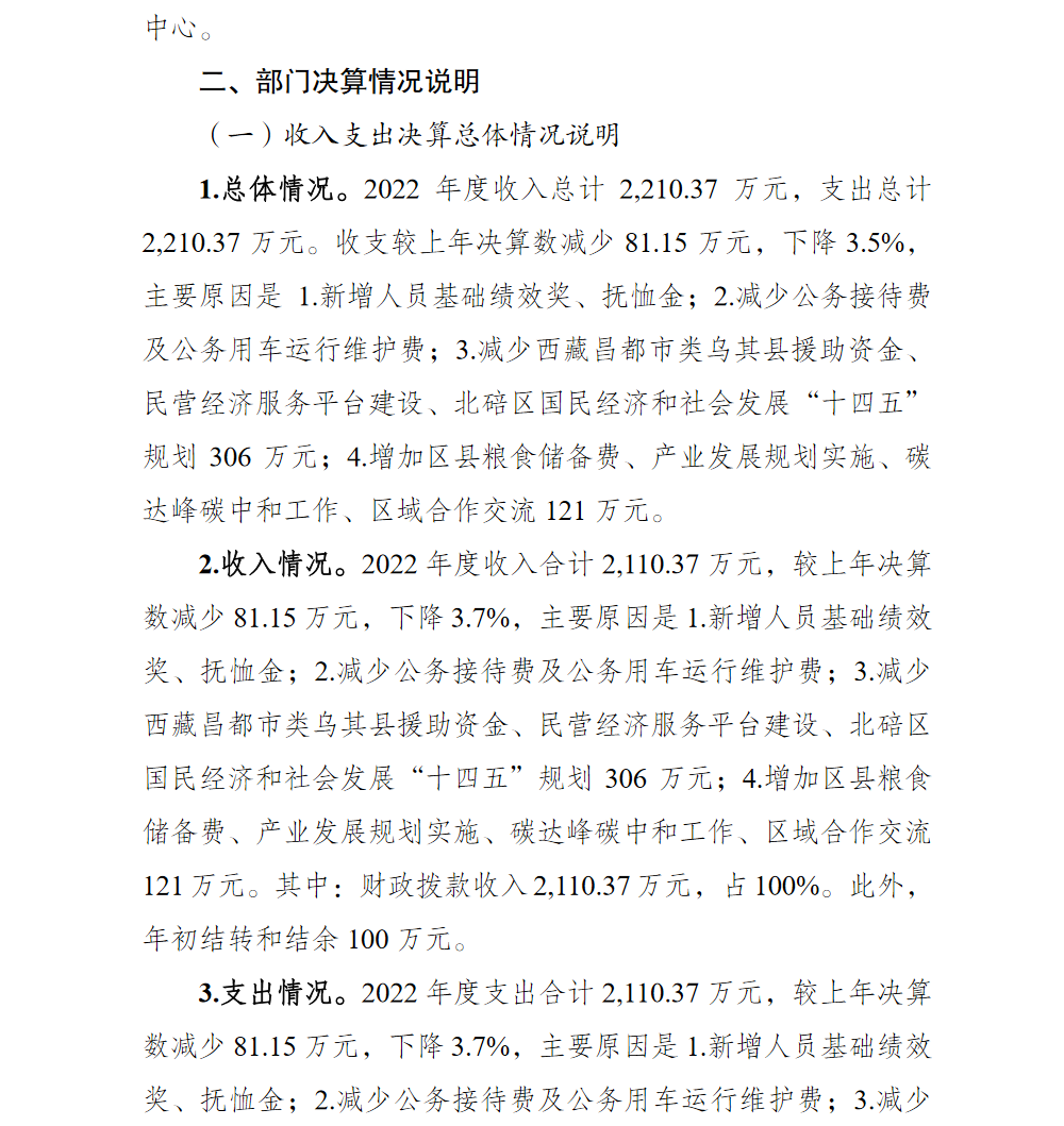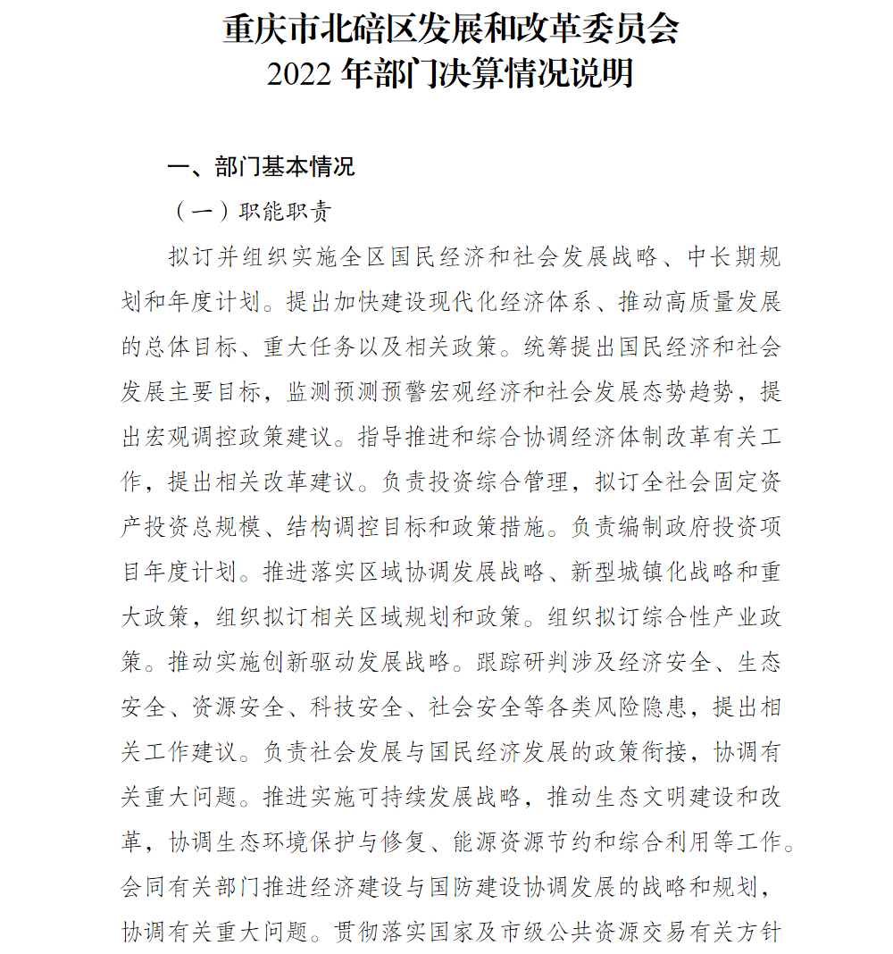 重庆市北碚区发展和改革委员会2022年部门决算情况说明