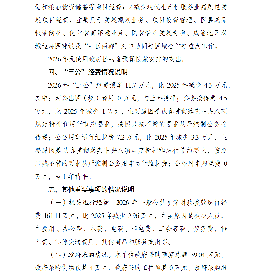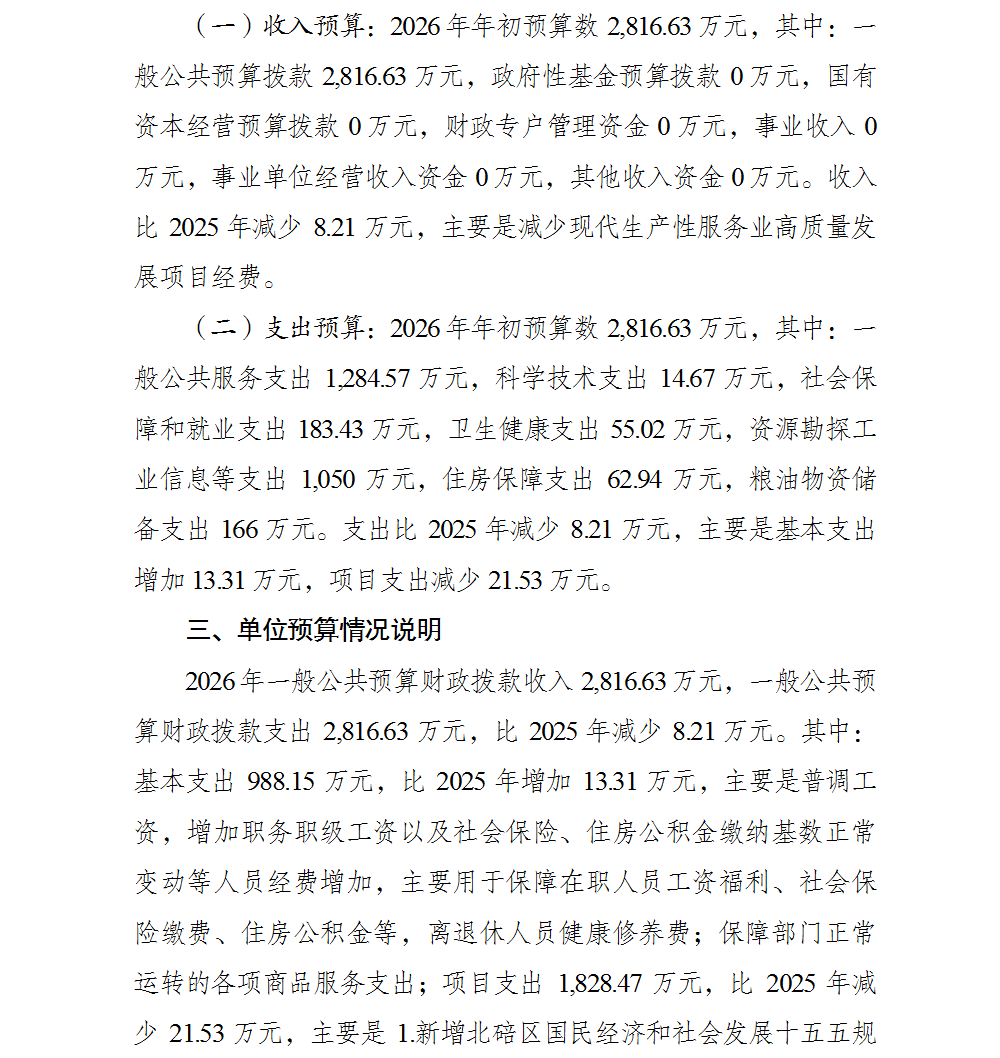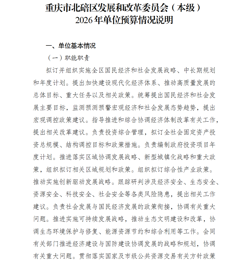 重庆市北碚区发展和改革委员会(本级)2026年单位预算情况说明