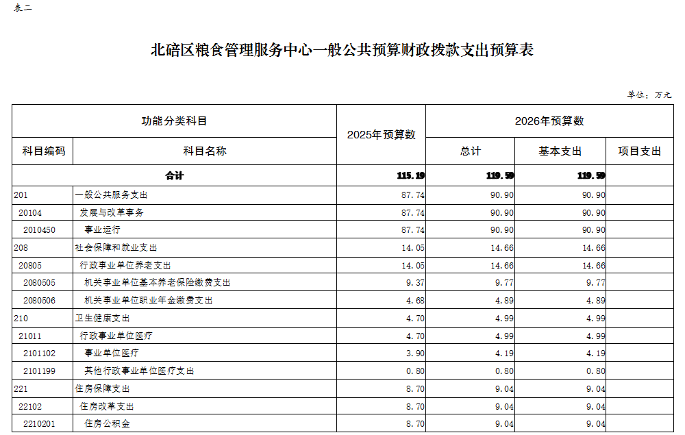 北碚区粮食管理服务中心2026年单位预算情况说明及附表.pdf