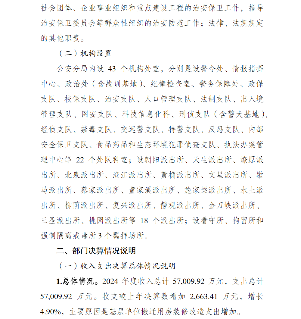 重庆市公安局北碚区分局2024年度部门决算情况说明