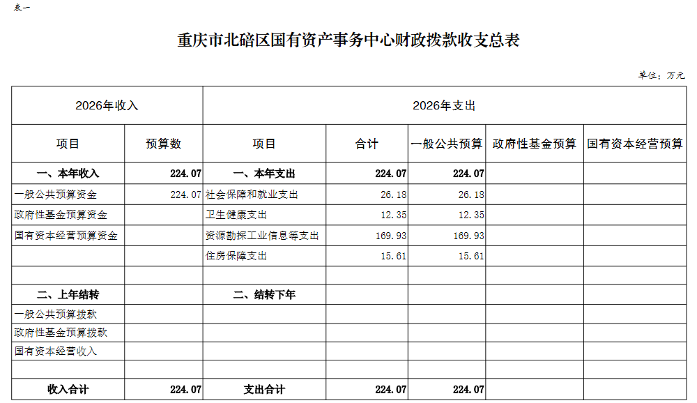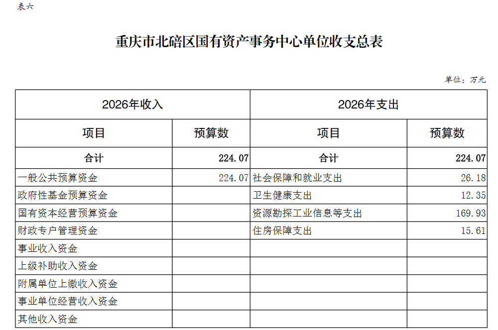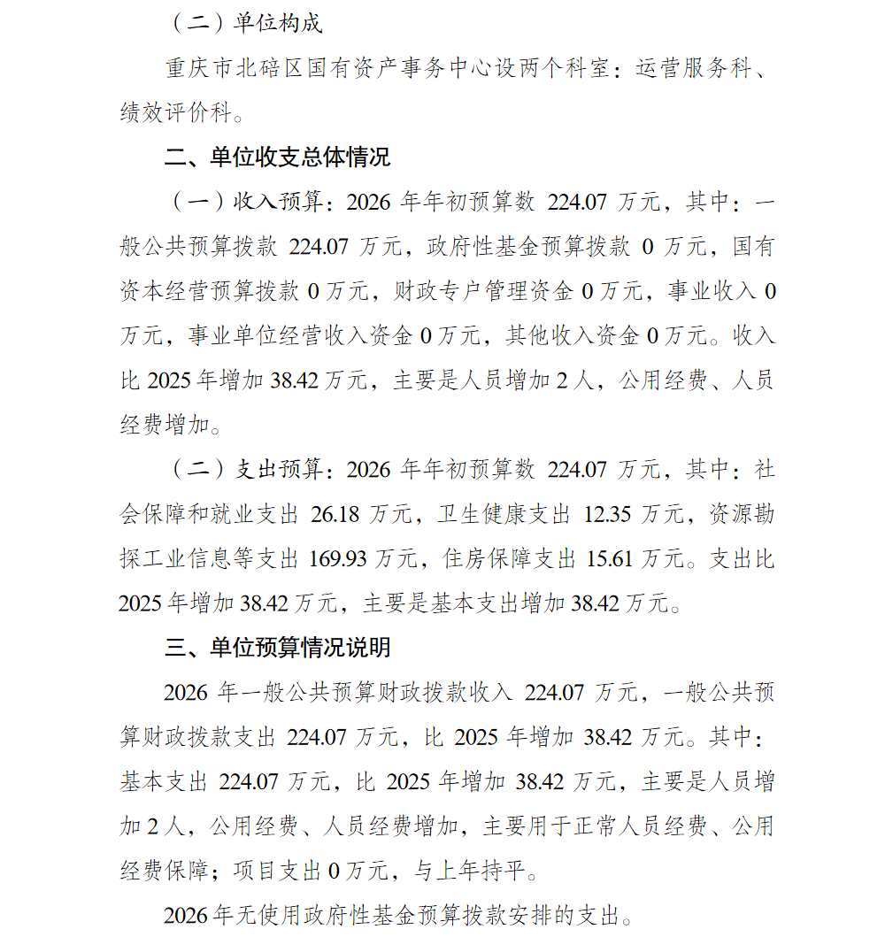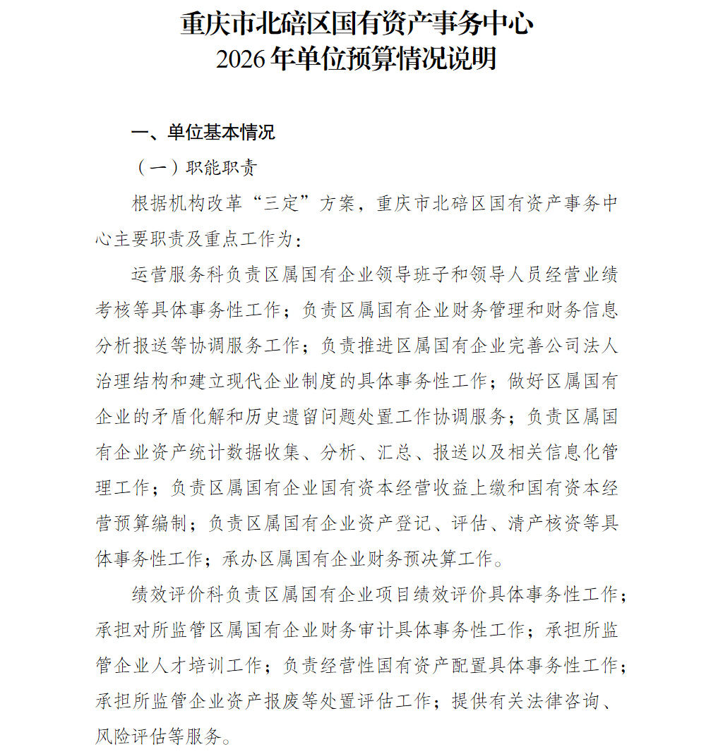 重庆市北碚区国有资产事务中心2026年单位预算情况说明