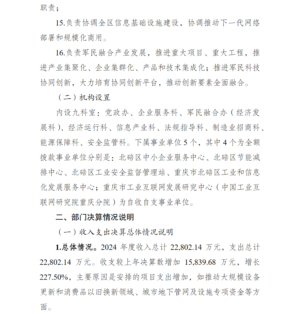 重庆市北碚区经济和信息化委员会 2024 年度部门决算情况说明