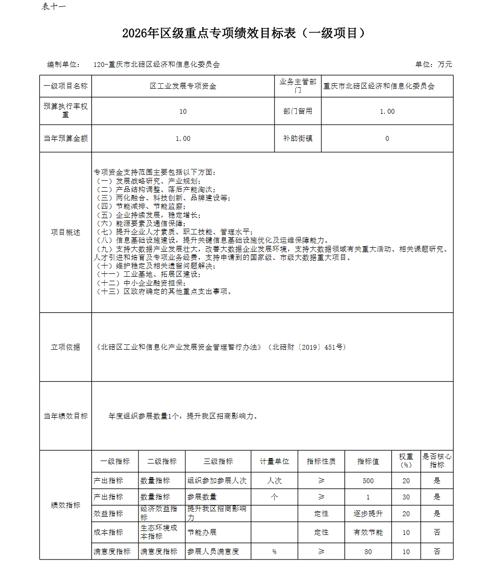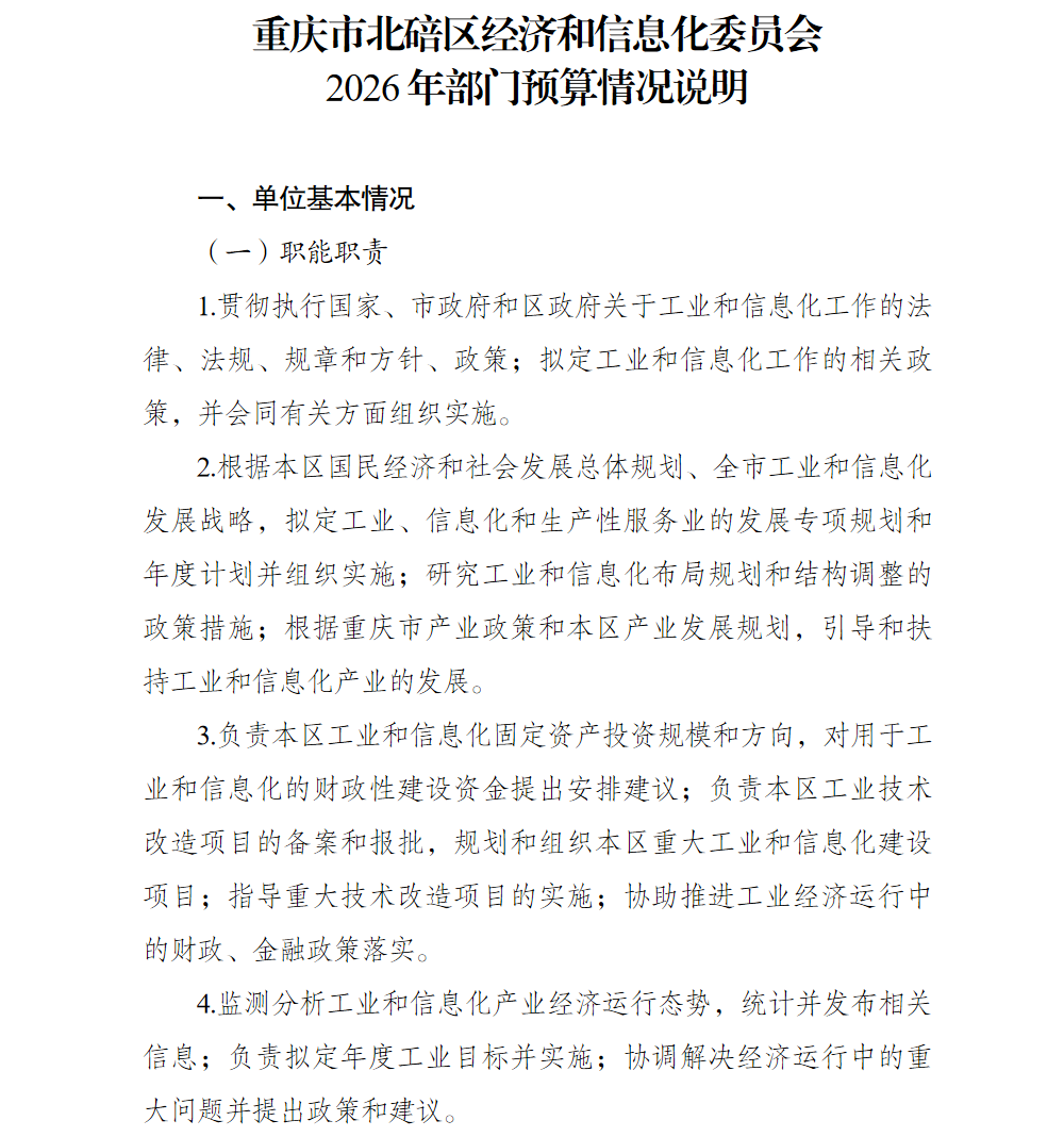 重庆市北碚区经济和信息化委员会2026年部门预算情况说明