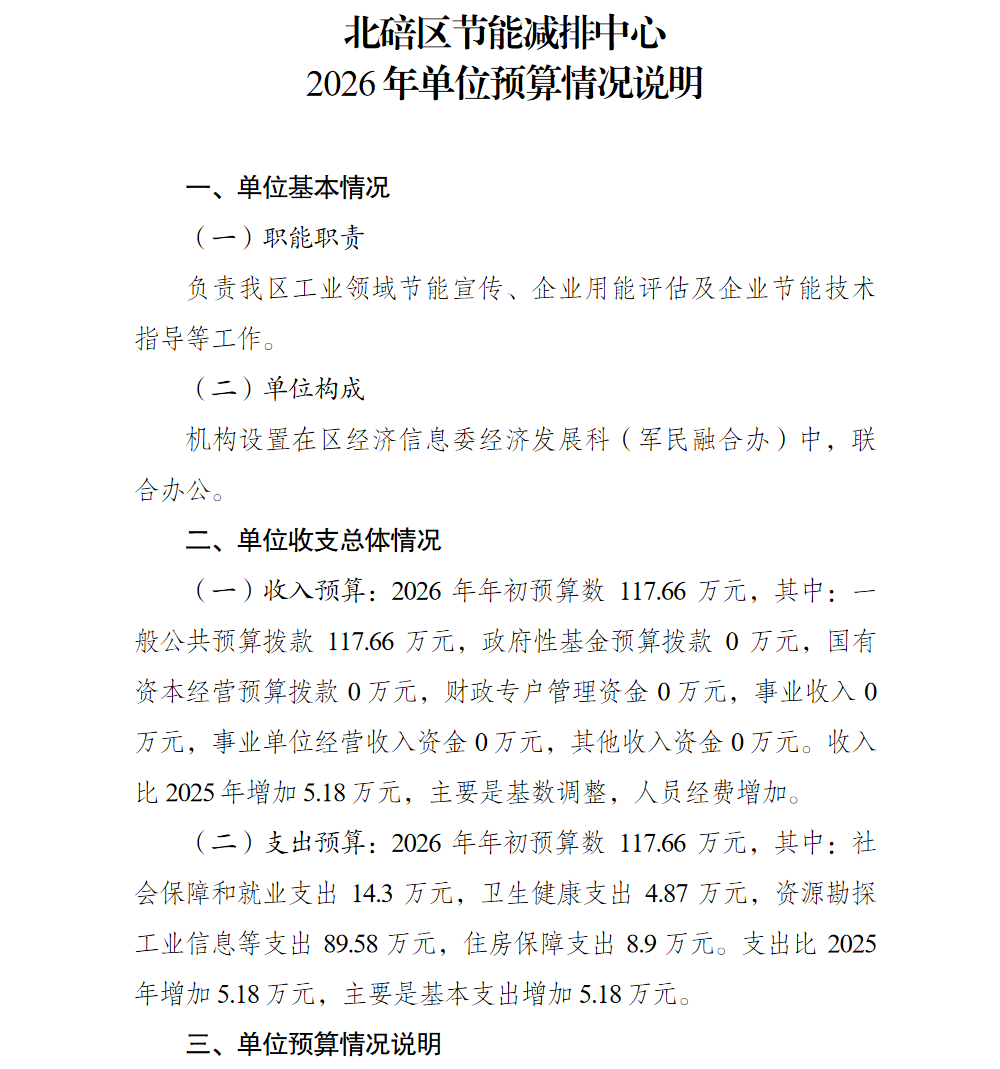 北碚区节能减排中心2026年单位预算情况说明及附表.pdf