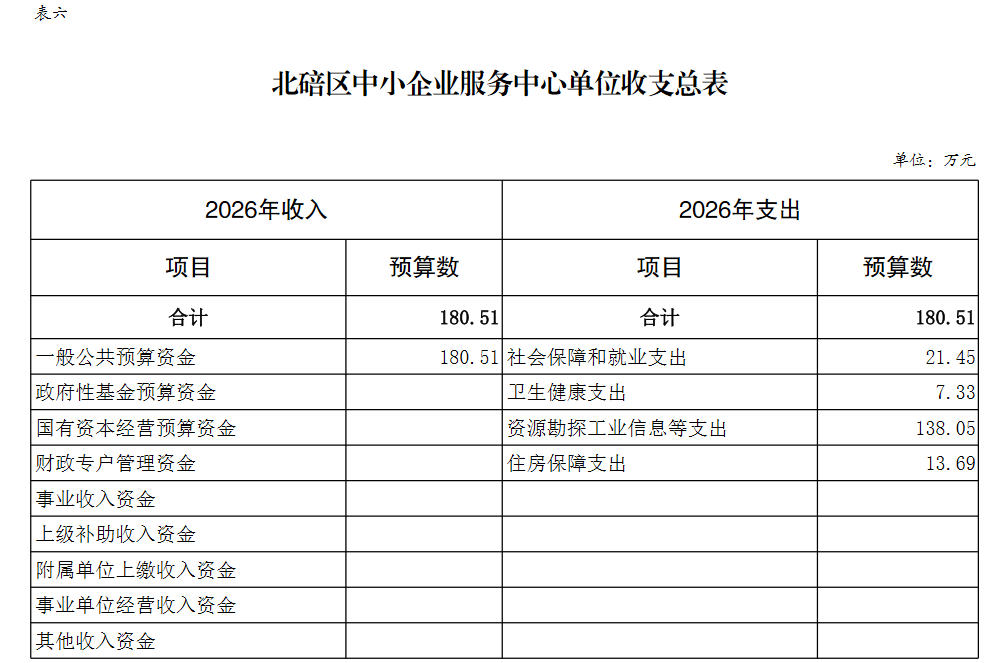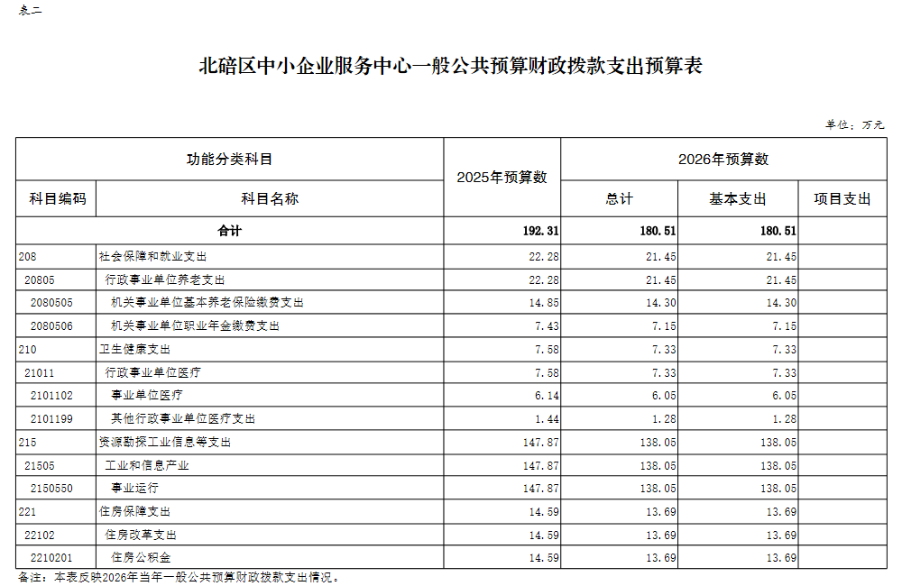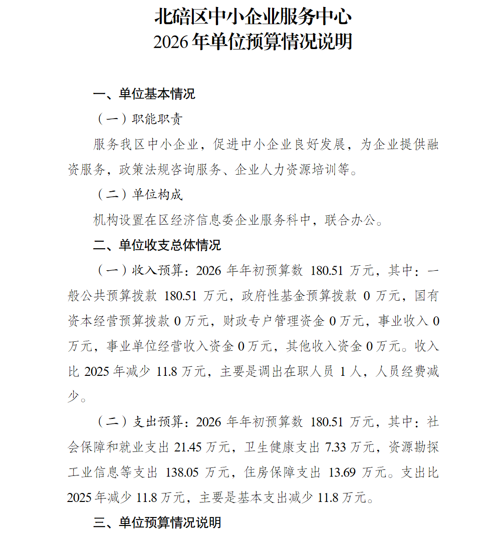 北碚区中小企业服务中心2026年单位预算情况说明及附表.pdf
