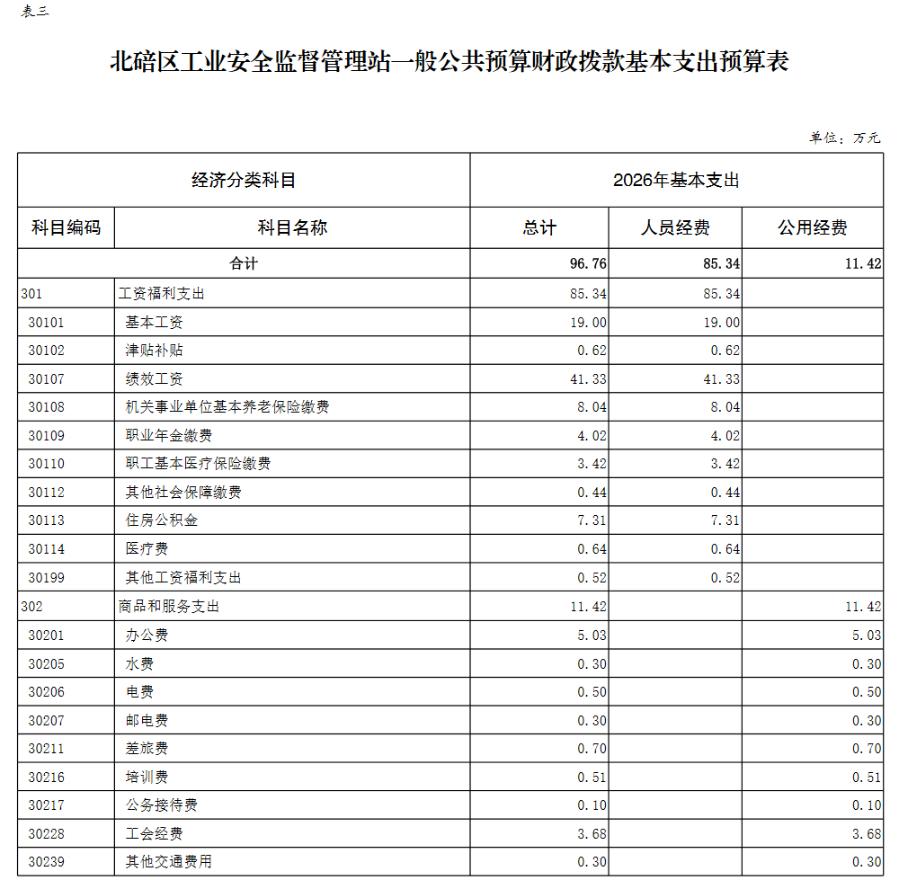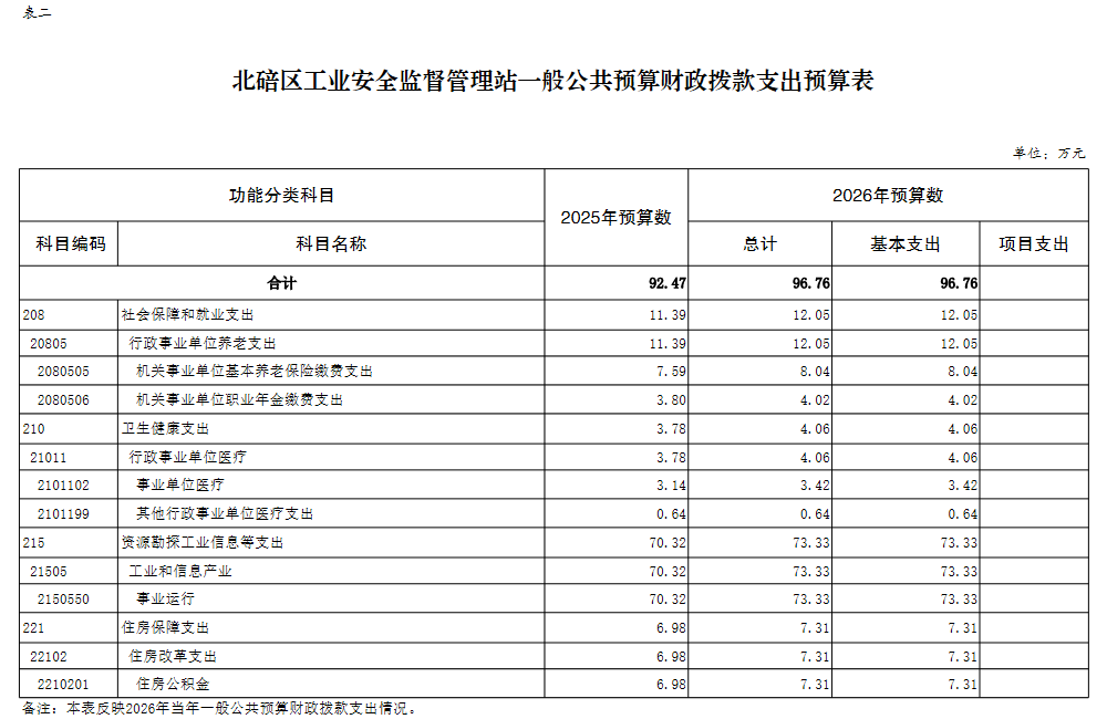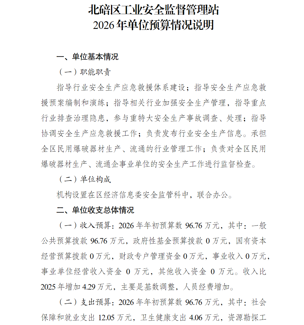 北碚区工业安全监督管理站2026年单位预算情况说明及附表.pdf