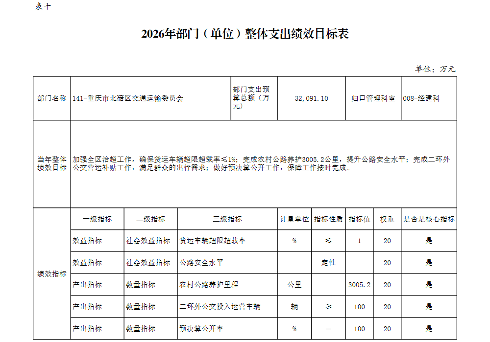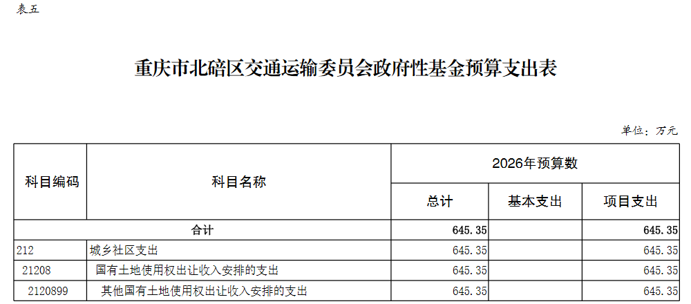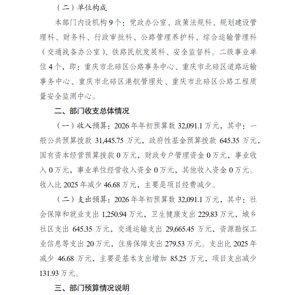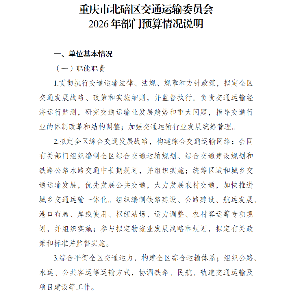 重庆市北碚区交通运输委员会2026年部门预算情况说明